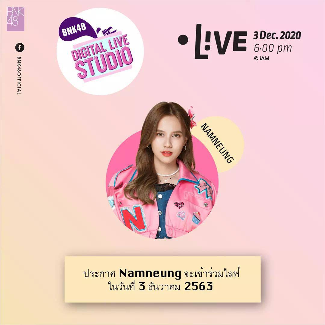 ประกาศ #NamneungBNK48 จะเข้าร่วมไลฟ์ในวันที่ 3 ธันวาคม 2563