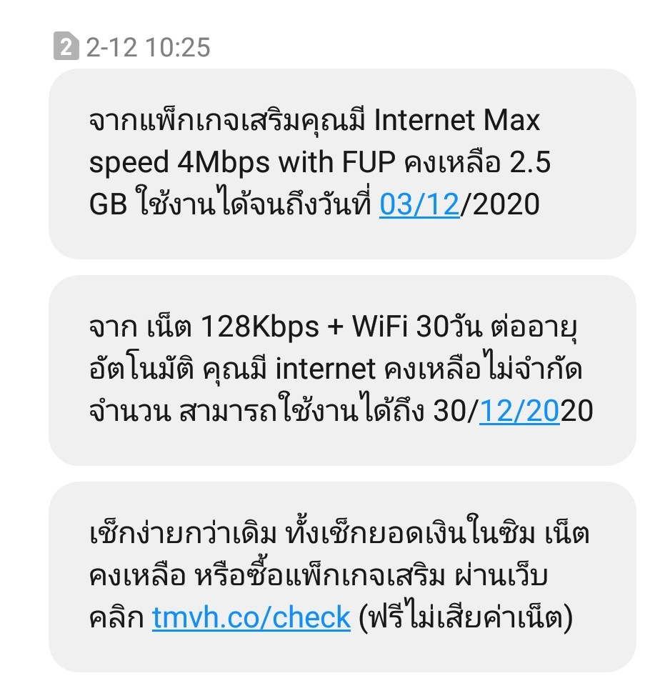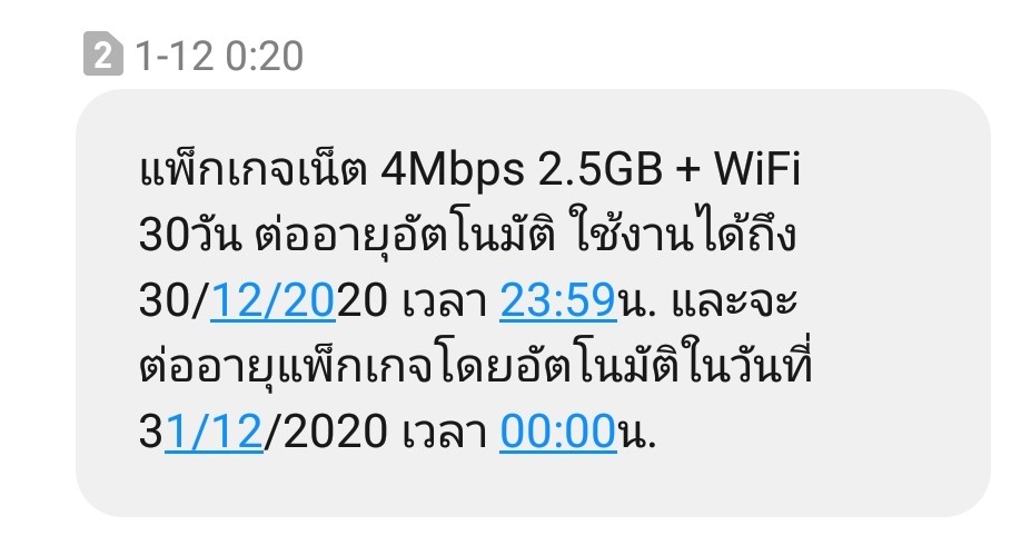และอันนี้คือข้อความยืนยันการต่อโปรสำเร็จ สังเกตที่วันหมดอายุ คือ 30/12/2020 23.59น.