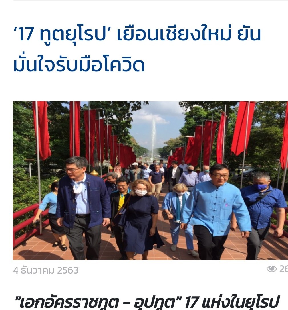 เอกอัครราชทูต - อุปทูต" 17 แห่งในยุโรปลงพื้นที่ จ.เชียงใหม่ ยืนยันมั่นใจโควิด-19 เชื่อมั่นรับมือไวรัสได้ ชี้ไทยแดนสวรรค์การท่องเที่ยว ต้องไม่ให้เรื่องเล็กน้อยทำลายความมั่นคงสาธารณสุขของประเทศ