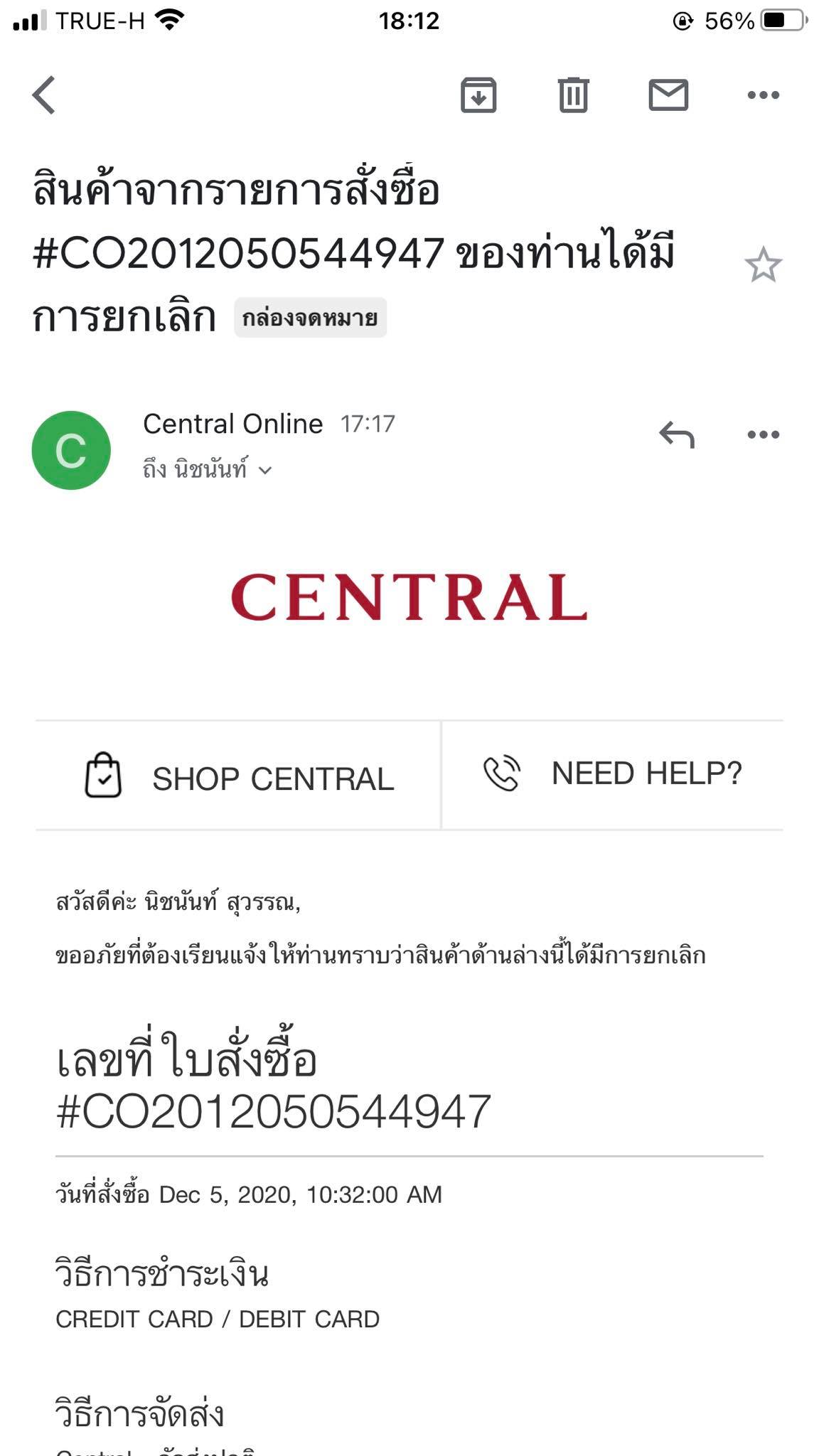 ซื้อนาฬิกาจาก https://www.central.co.th/th/ จ่ายเงินเสร็จแจ้งเรามายกเลิกคำสั่งซื้อเนื่องจากไม่มีของ รอคืนเงิน45วัน