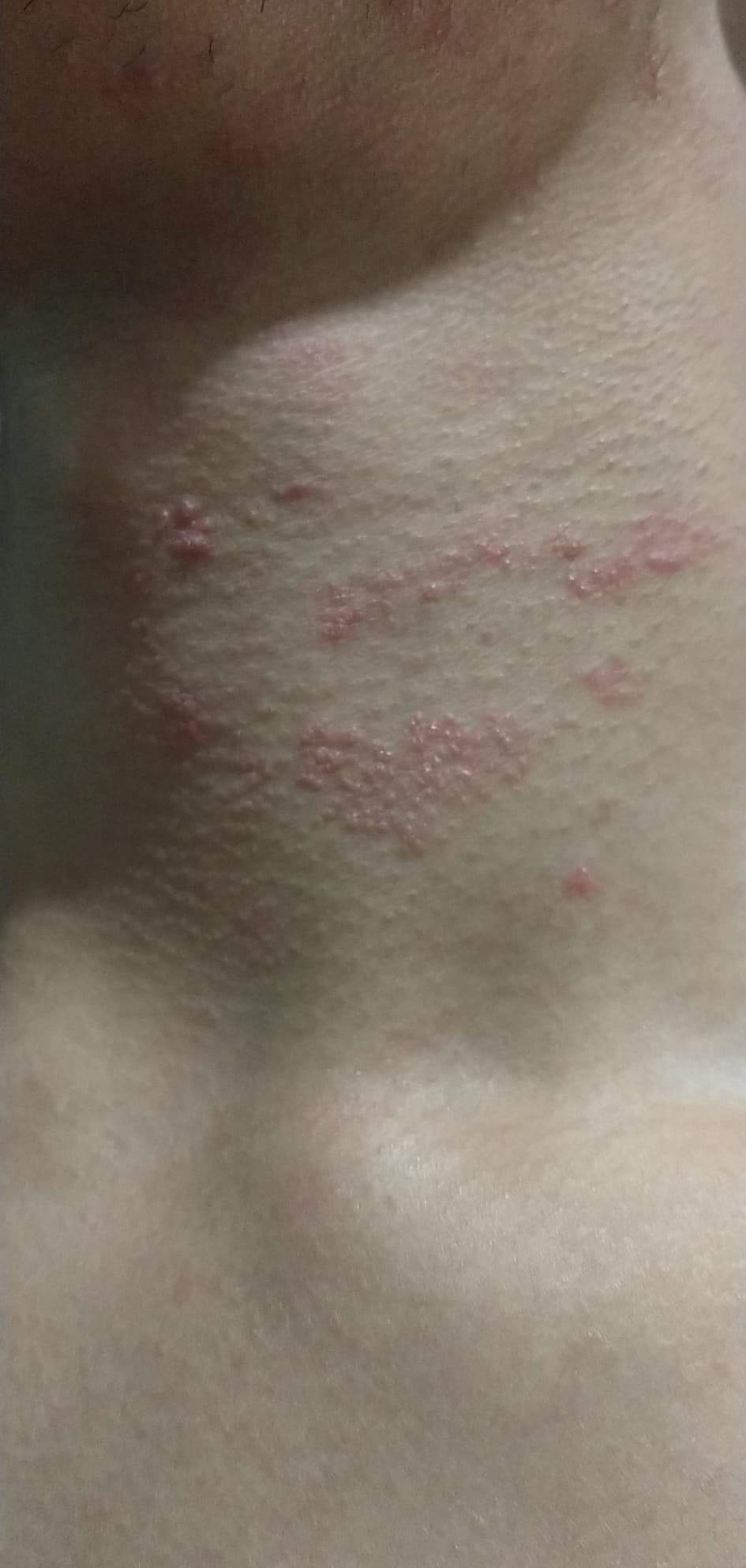 ผิวหนังเป็นตุ่มน้ำเหลืองใสๆตรงคอค่ะ ไม่รู้เป็นอะไร