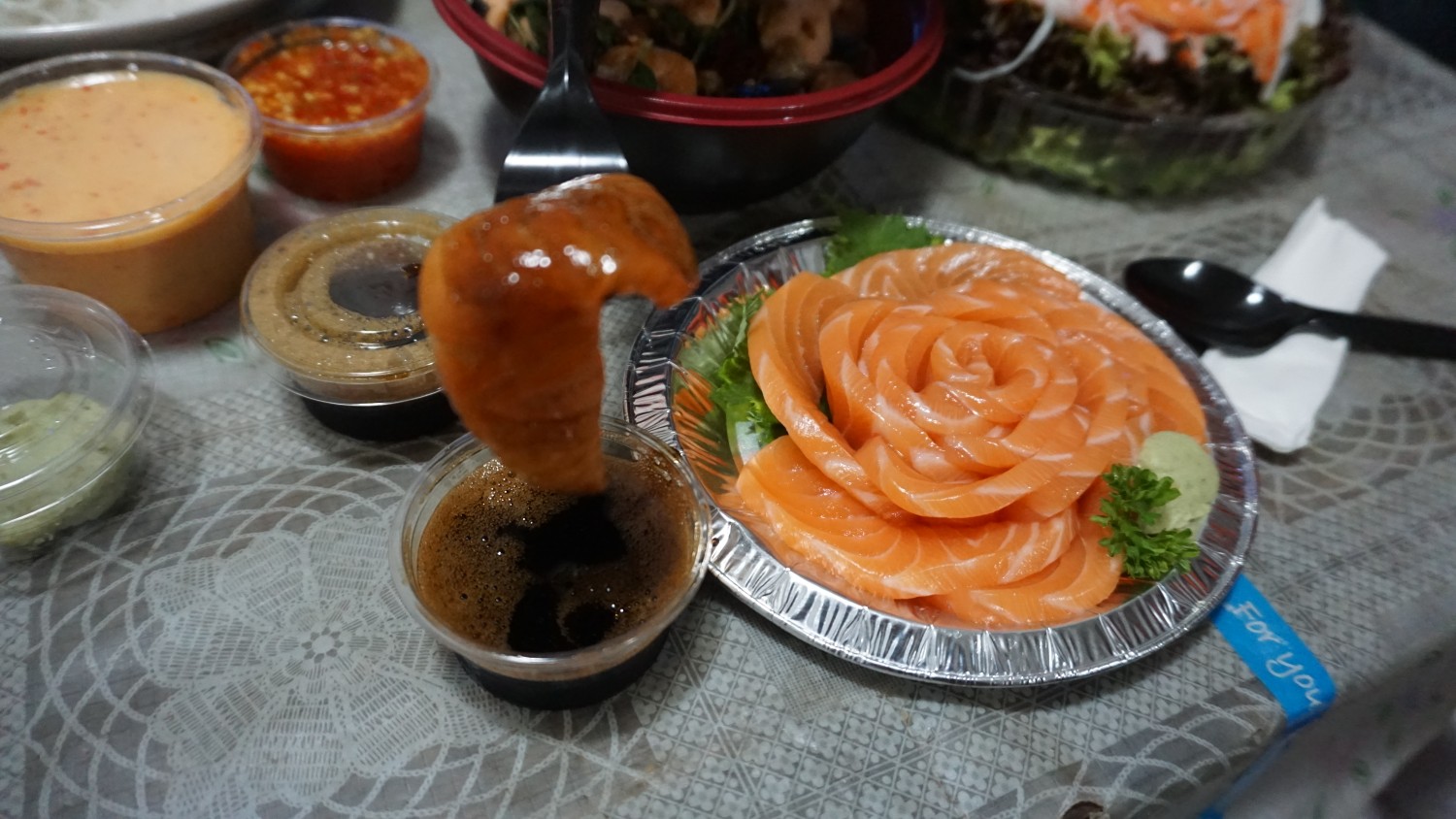 พ่อตัวดีของเอมเค้าชอบเมนูผัดกะเพรากับปูอัดจิ้มวาซาบิมากค่ะ ถึงขั้นคว้าชามไปทานคนเดียวเลย ^^ จริงๆแล้วแซลมอนไม่ได้คาวอย่างที่เอมเคยคิดไว้เลยค่ะ เนื้อของเค้ามีความนุ่ม เนียน หวานแบบเนื้อปลาด้วยซ้ำ ซึ่งวันนี้เอมและครอบครัวก็ได้ทะลายกำแพงที่เคยอคติกับปลาดิบลงได้เป็นผลสำเร็จแล้ว ต่อจากนี้เมนูแซลมอนก็คงจะเป็นอีกหนึ่งเมนูที่เอมและครอบครัวจะได้ทานกันบ่อยมากขึ้น ส่วนหนึ่งก็ต้องขอขอบคุณทางเพจ Salmon Farm By ม่อนอ้วน ที่ช่วยให้คำแนะนำเอมเป็นอย่างดีค่ะ
