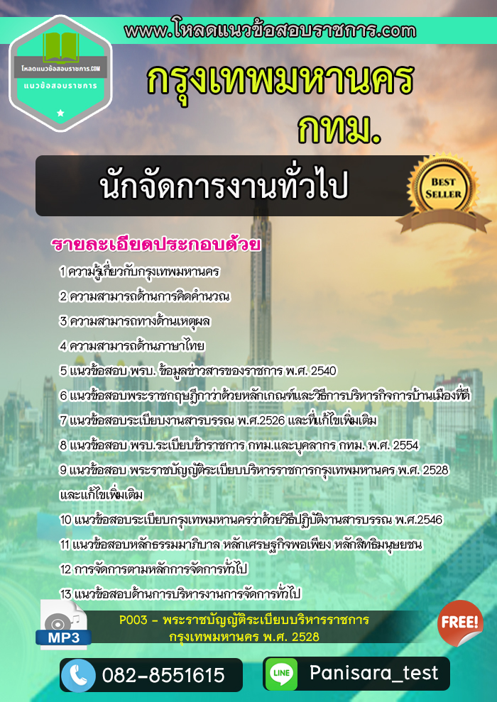 (Exam) รวมแนวข้อสอบนักจัดการงานทั่วไป กรุงเทพมหานคร (กทม) ติวสอบเข้มข้น