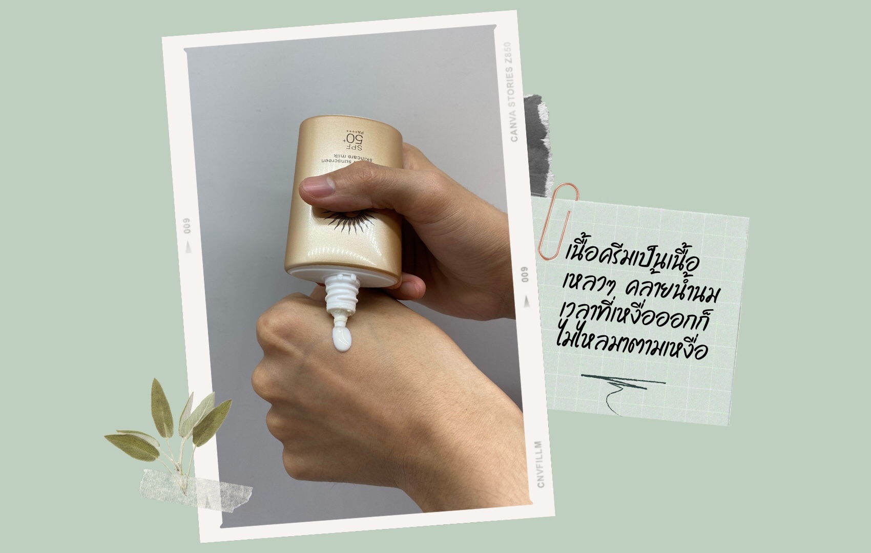 เนื้อครีมเป็นเนื้อเหลวๆ คล้ายน้ำนม ตอนใช้ครั้งแรกเราก็คิดนะ จะเอาอยู่มั้ยเนี่ยะ 55++ แต่คือพอใช้แล้วคือดีย์จร้า ทาแล้วหน้าไม่ลอย เวลาที่เหงื่อออกก็ไม่ไหลมาตามเหงื่อนะ เราก็ใช้มาตัวนี้ตลอดยังไม่เคยนอกใจเลยนะ