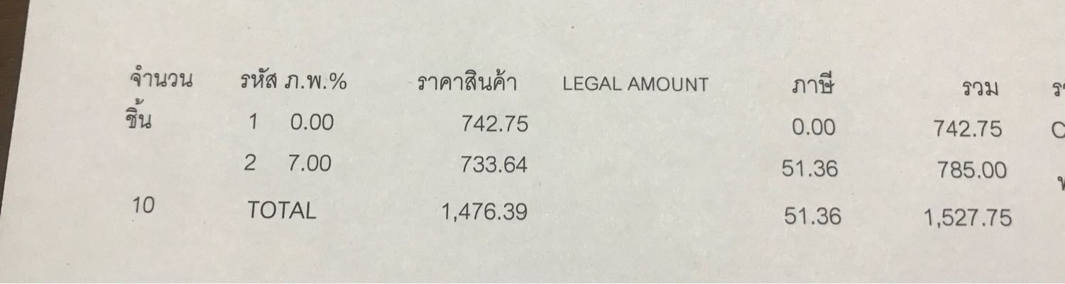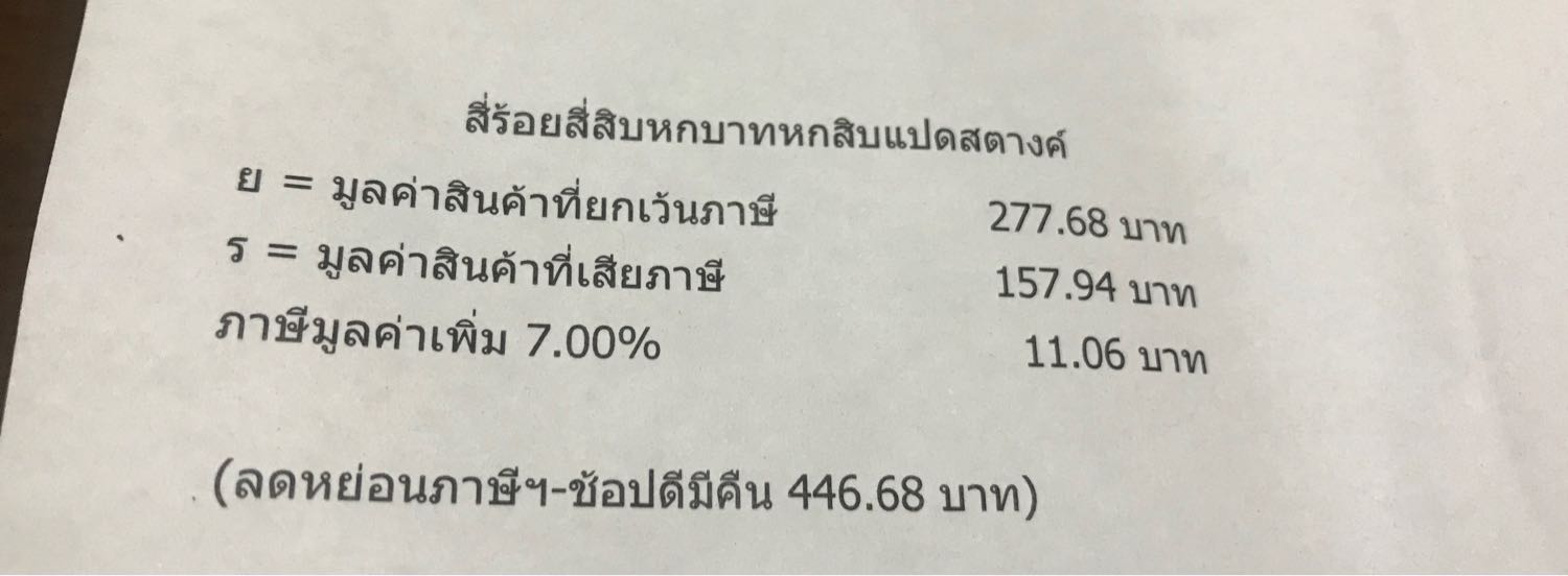 ร้านที่มีใบเสร็จแยกรายการ ส่วนที่เสียภาษี 7% กับส่วนที่ไม่เสีย