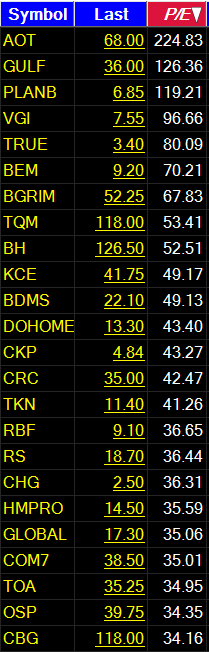 ยิ่ง P/E สูง มันยิ่งขึ้น แต่P/E ต่ำติดดิน มันไม่มี Growth คนเลยไม่เล่นไง