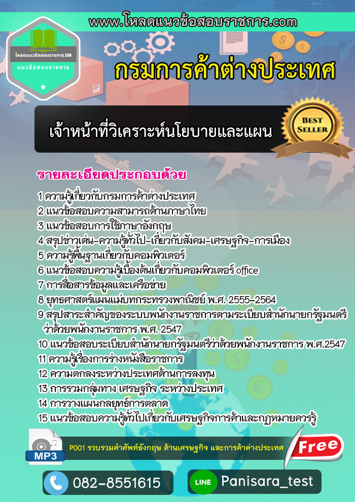 แนวข้อสอบเจ้าหน้าที่วิเคราะห์นโยบายและแผน กรมการค้าต่างประเทศ