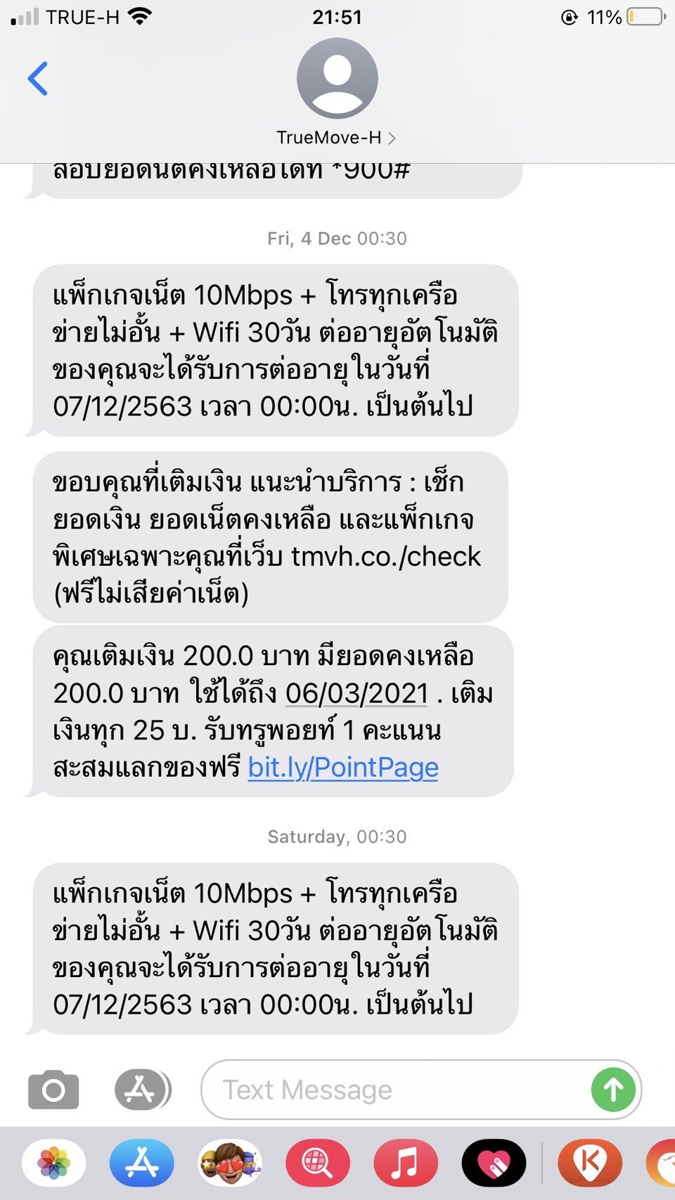 Message ก็ขึ้นเตือนไลังเติมเงินแล้วว่า จะได้รับการต่ออายุตามภาพ