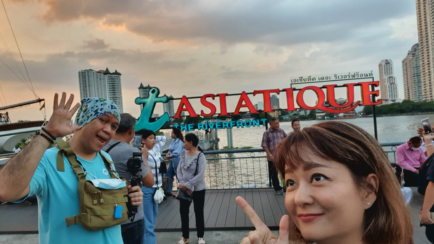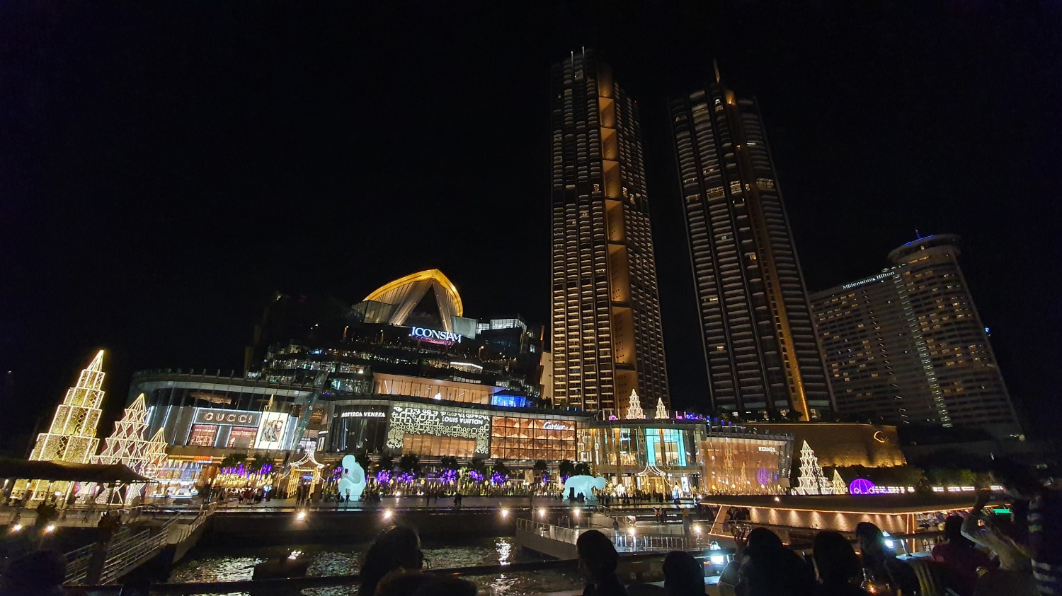 เขาจะมีจอด 5 นาทีหน้า THE ICON SIAM ก็กดภาพไปนะสวยดี ได้มองตึกนี้จากในน้ำ