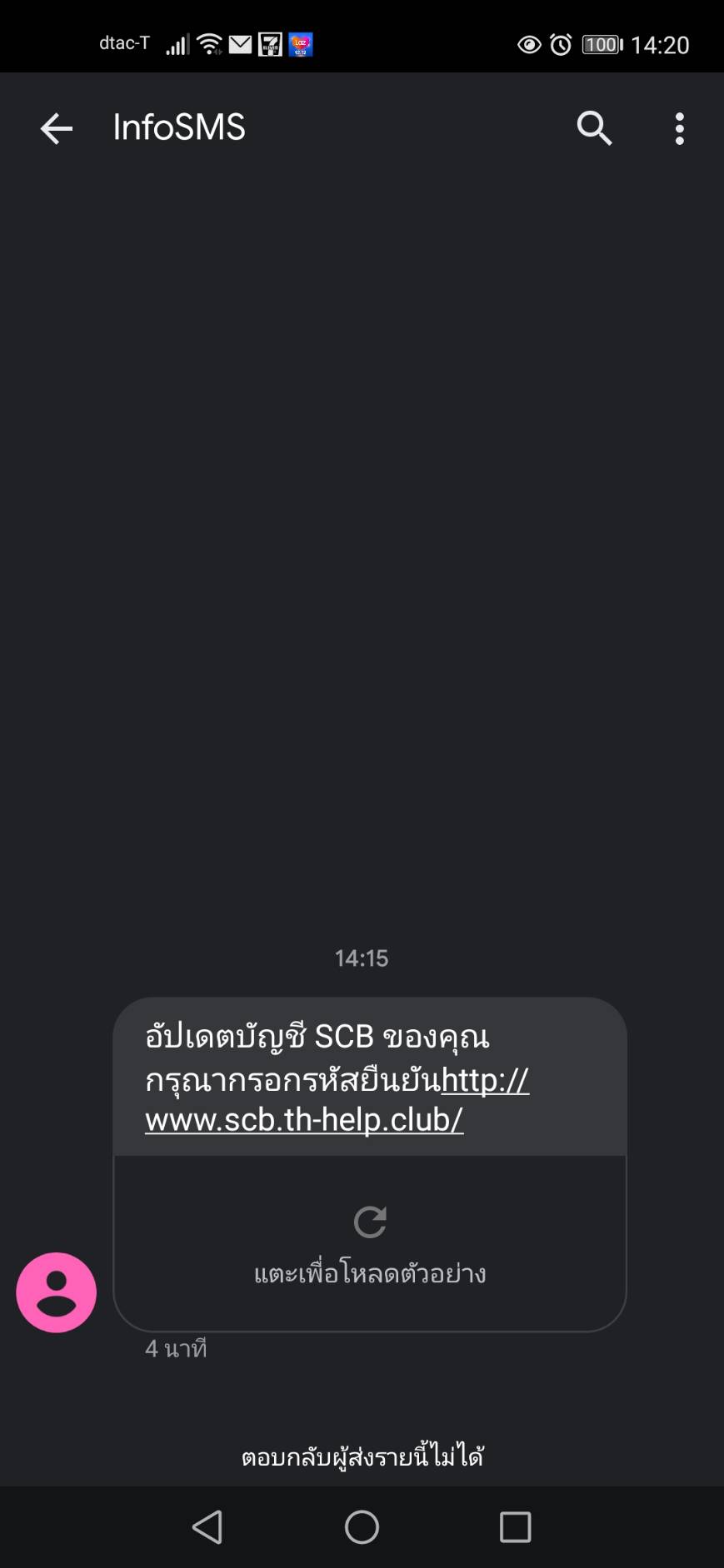 วันนี้มี sms ให้อัปเดทบัญชี scb มาครับ ปลอมหรือไม่