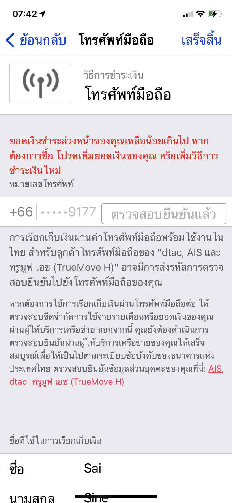 ชำระเงินในApple ID ไม่เพียงพอทั้งที่มีอยู่