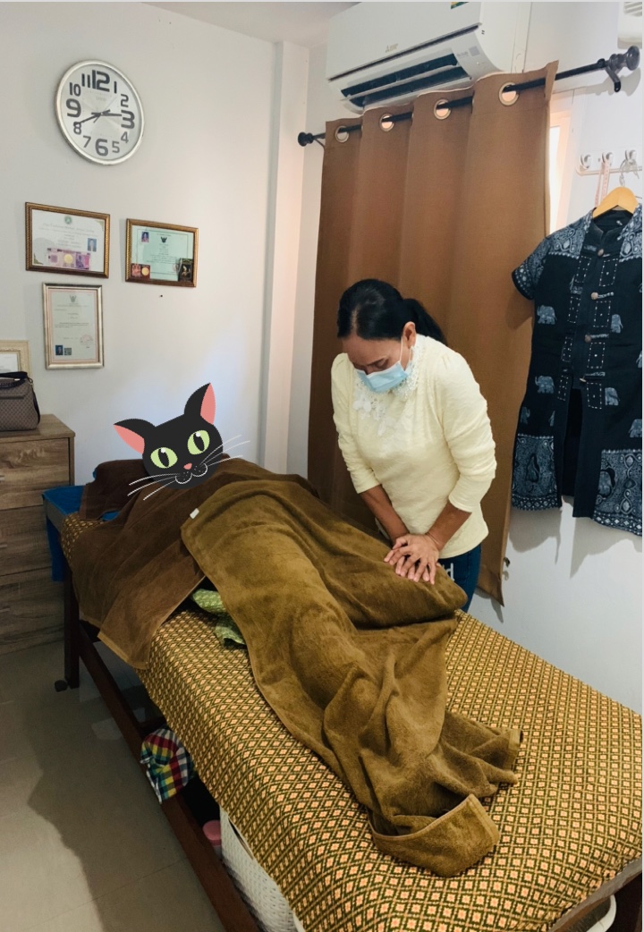 แรกๆแม่ก็บอกอาการแค่ว่านอนไม่หลับเฉยๆ ไปๆมาๆ โอ้โหหหหหห นวดยาววววว 5555 แบบจับตรงไหนแม่ก็บอกใช่ตรงนั้นปวด ตรงนี้แหละตึง แม่บอกว่าหาร้านนวดแบบนี้มานานแล้ว แม่ชอบมาก เราไม่ได้นวดนะ แต่เนียนเข้าไปด้วยเฉยๆ แล้วก็ได้เรื่องจริงๆ แม่ร้องแบบ โอ๊ยยยย เจ็บบบบบ 555 แต่อาจารย์ที่นวดก็บอก อดทนนะ เจ็บตอนนี้ แต่หลังจากนี้กลับไปการันตีว่าดีขึ้น อาการปวดเบาขึ้น ถึงบ้านหลับยาวแน่ (ไม่ได้เจ็บเพราะระบมนะ ขีดเส้นเบาๆ เพราะเค้ามีสูตรแก้ระบมตอนหลังด้วยล่ะ)