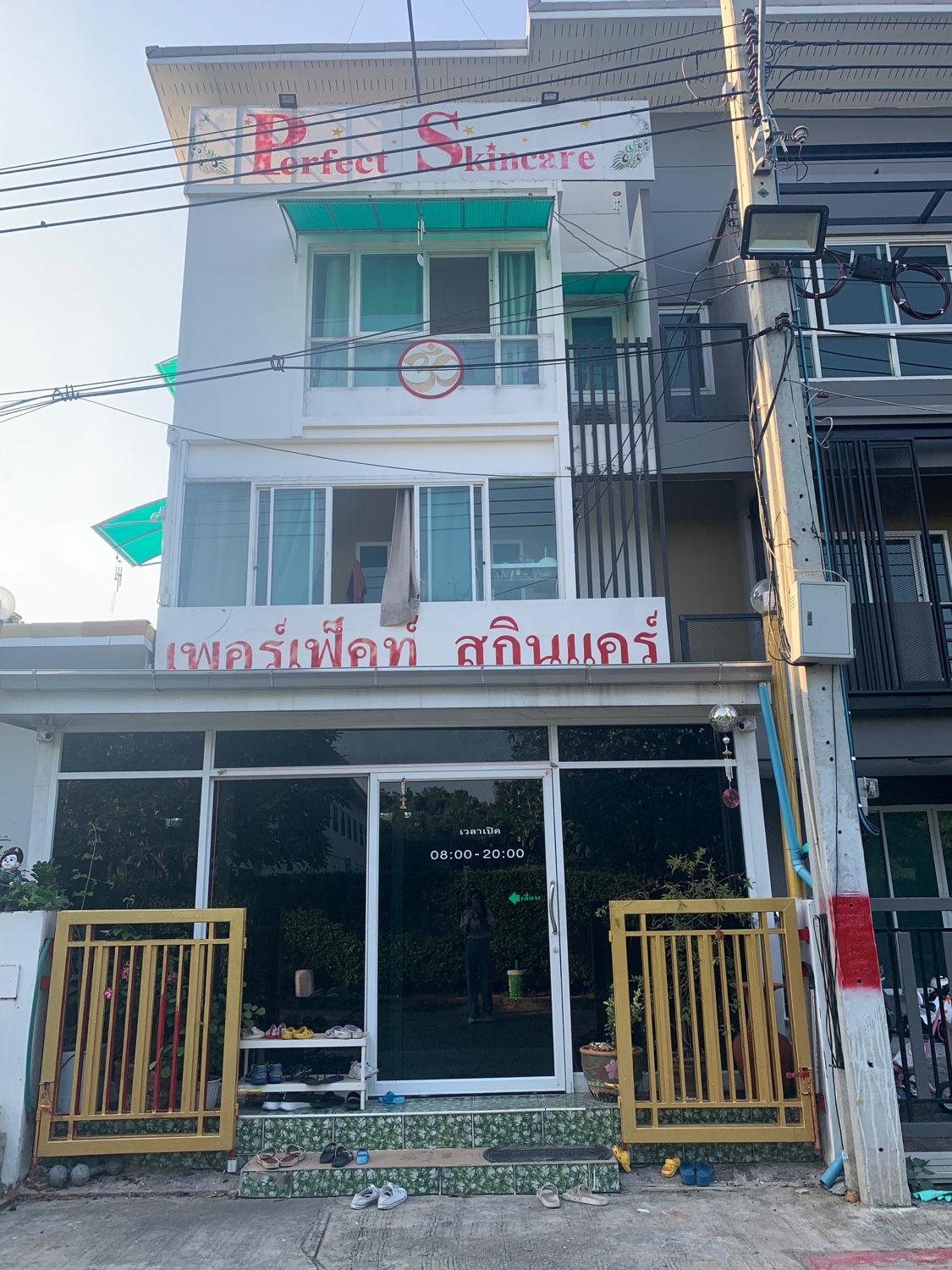 คือจะบอกว่าร้านนวดที่ไป เค้าไปเปิดอยู่ในโซนโครงการหรือหมู่บ้านอะไรทำนองนี้อ่ะ อยู่แถวๆเส้นราชพฤกษ์ ชื่อร้าน Perfect Skincare (ชื่อยังกะคลินิกศัลยกรรม) ก็ลองโบกพี่แทกไปดู แอบได้เบอร์ร้านมาก็เลยโทรจองคิวไว้ก่อน ไปถึงร้านหน้าตาก็อารมณ์เหมือนนวดที่บ้านเพื่อนแม่ไรงี้5555 แอบตกใจเบาๆว่าแบบ เอ้อ หน้าตาร้านมันไม่เหมือนที่คิดนะ แต่เอาล่ะ ไหนๆก็มาละ ก็ลองดูเถ๊อะ