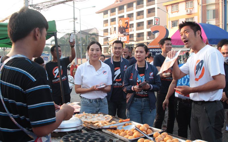 โดยนายธนาธร ได้นำทีมแจกแผ่นพลับใบปลิว ให้กับบรรดาพ่อค้า แม่ค้า และประชาชนที่มาจับจ่ายซื้อขายสินค้าภายในตลาด พร้อมชูนโยบายของคณะก้าวหน้า ในการเปลี่ยนชลบุรี ภายใต้การนำของนางสาวพลอยลภัสร์ว่า จะเป็นชลบุรีที่ดีกว่านี้ น่าอยู่ เป็นชลบุรีที่รักสิ่งแวดล้อม เป็นชลบุรีที่โปร่งใส เป็นชลบุรีที่ปราศจากอิทธิพล จะเป็นชลบุรีที่ปราศจากความกลัว เป็นชลบุรีที่เป็นของทุกคน อยู่ที่ทุกคนว่าจะเลือกให้เป็นชลบุรีแบบไหน พร้อมกล่าวว่าชลบุรีเป็นจังหวัดที่มีการถูกผูกขาดการเมืองมาอย่างยาวนาน