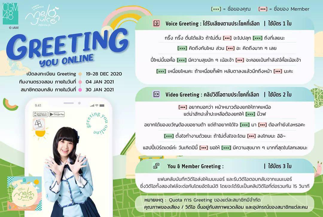 ประกาศรายละเอียดเพิ่มเติม และประโยค Greeting สำหรับ “CGM48 Greeting You Online" !!