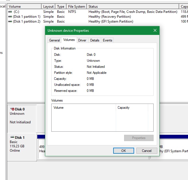 https://www.easeus.com/resource/disk-unknown-not-initialized.html#:~:text=If%20%22disk%20unknown%20not%20initialized,an%20MBR%20or%20GPT%20disk.&text=Thus%2C%20when%20it%20is%20corrupted,showing%20as%20%22Not%20Initialized%22.