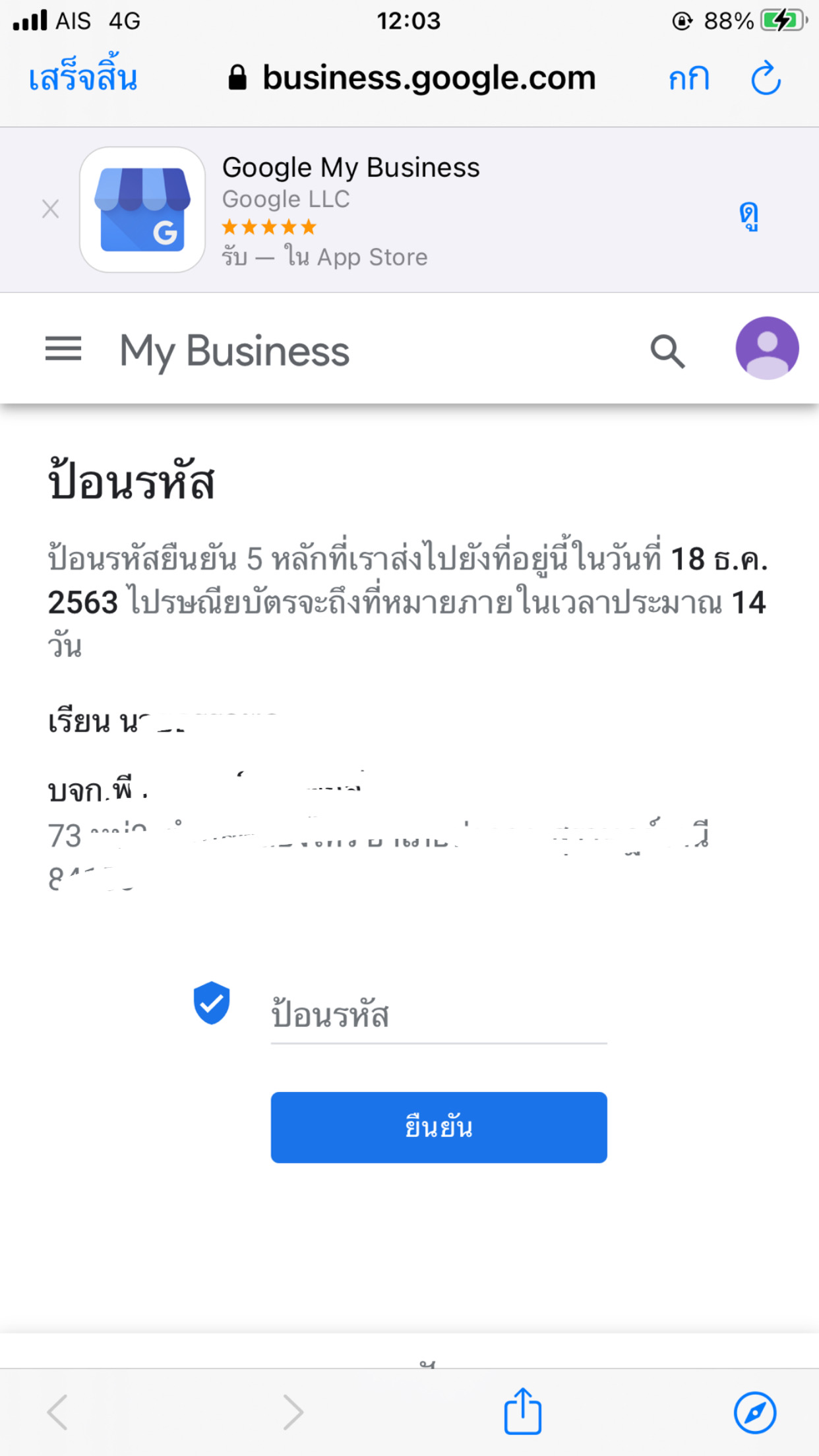 พอดีว่าฉันลองใช้ google my business เพื่อจะปักหมุดสถานที่แต่ว่ามันต้องรอไปรษณีย์บัตรภายใน 14 วัน แต่ไปเสิร์ชใน google เห็นว่ามีคนรับทำด้วย และเสร็จภายใน 1 วันแห