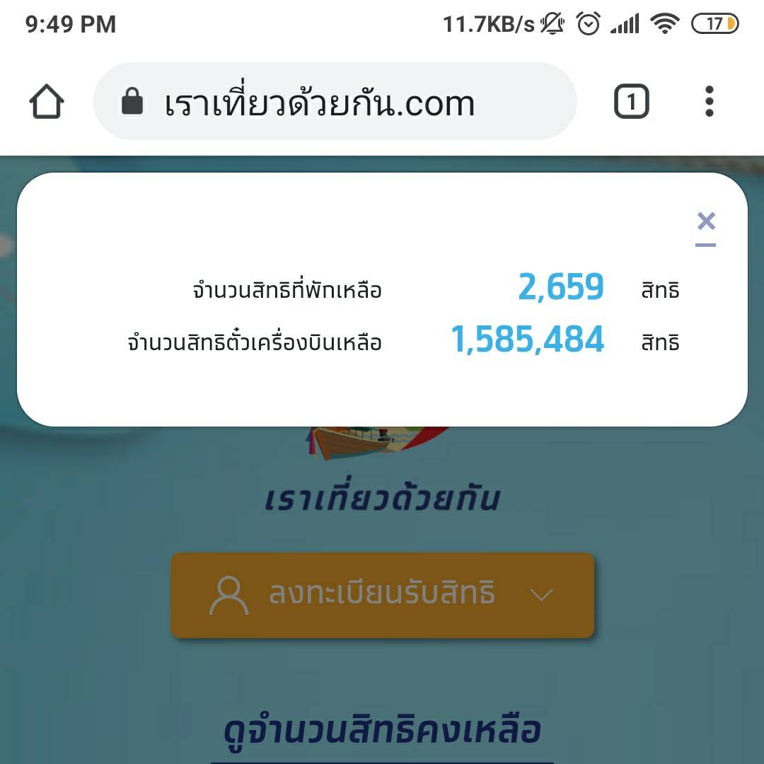 ตอนนี้ใครที่มีแผนเที่ยวปลายปีหรือปีใหม่และต้องการใช้สิทธิ์โครงการเราเที่ยวด้วยกันอาจจะตุ้มๆต่อมๆ เพราะรัฐระงับการเปิดเพิ่มห้องพัก 1 ล้านคืน และ 4 ล้านสิทธิ์ได้เต็มไปแล้ว