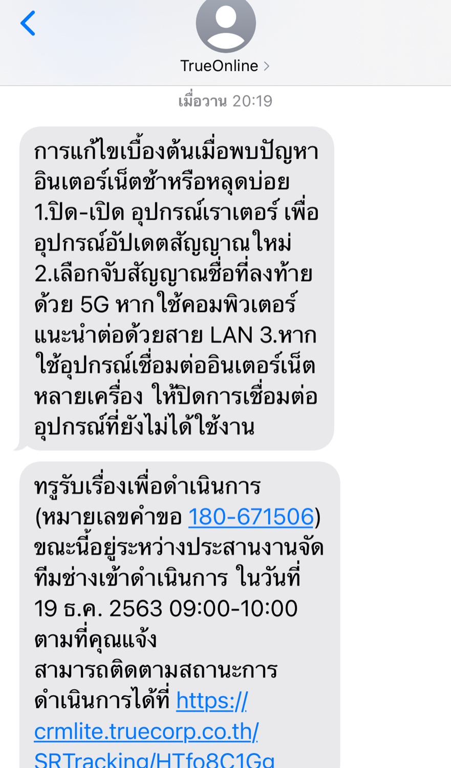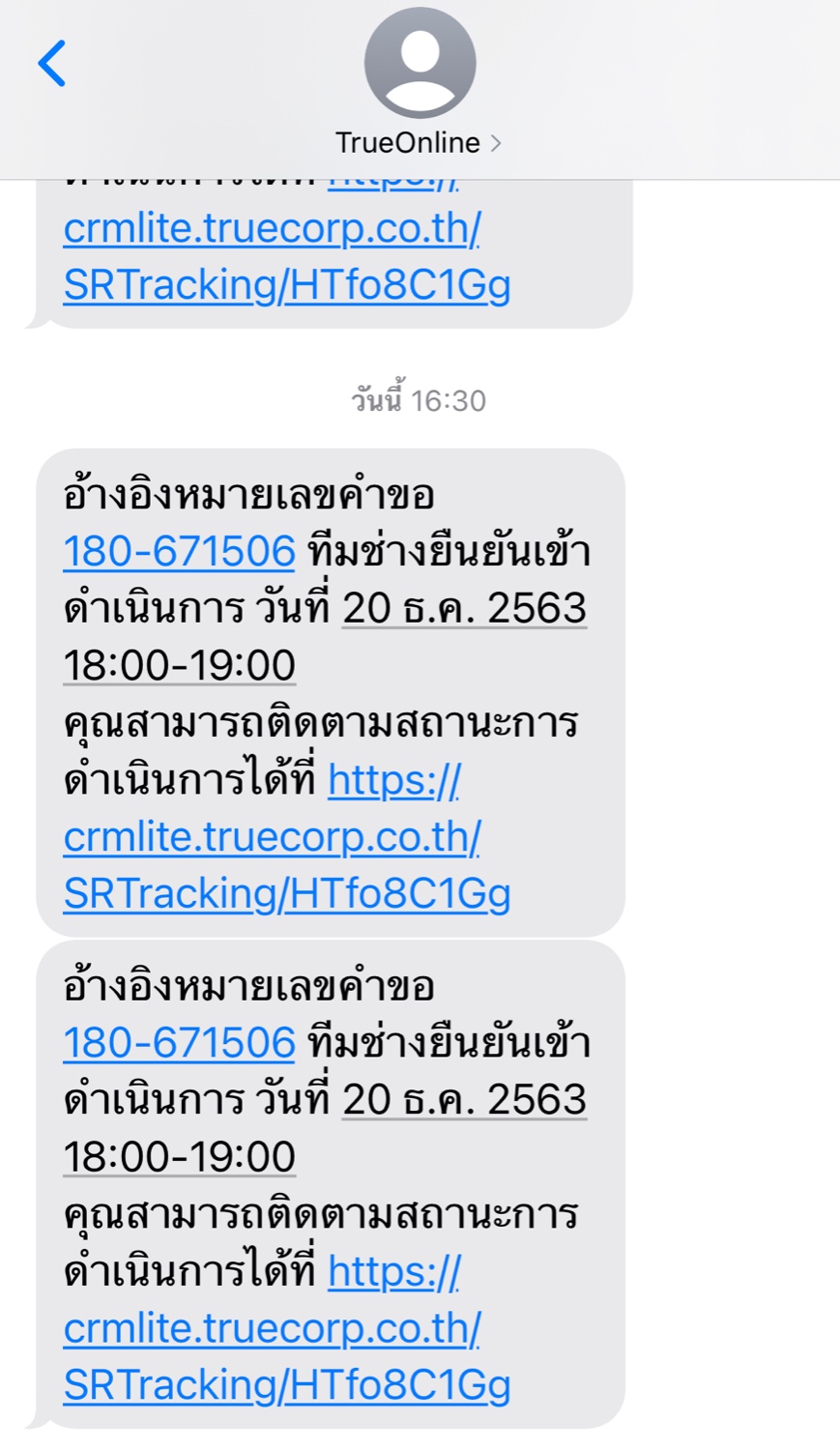ปรากฏว่าเราแจ้งไปตั้งแต่เย็นวันศุกร์ มี SMS ว่าอยู่ระหว่างหาทีมช่างเข้ามาจัดการในเช้าวันเสาร์