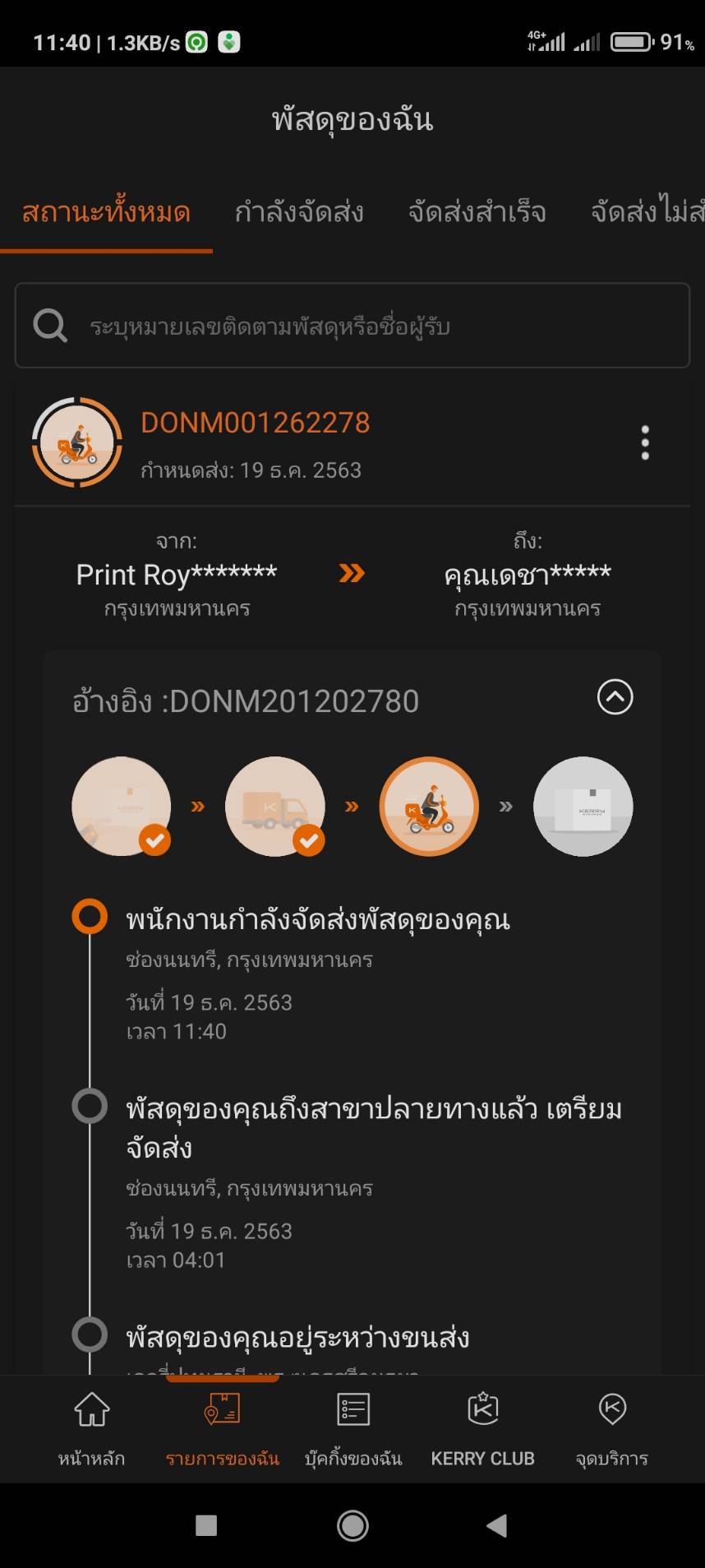 แจ้งว่าของออกมาส่งตั้งแต่วันที่ 19-12-63 / 11.40