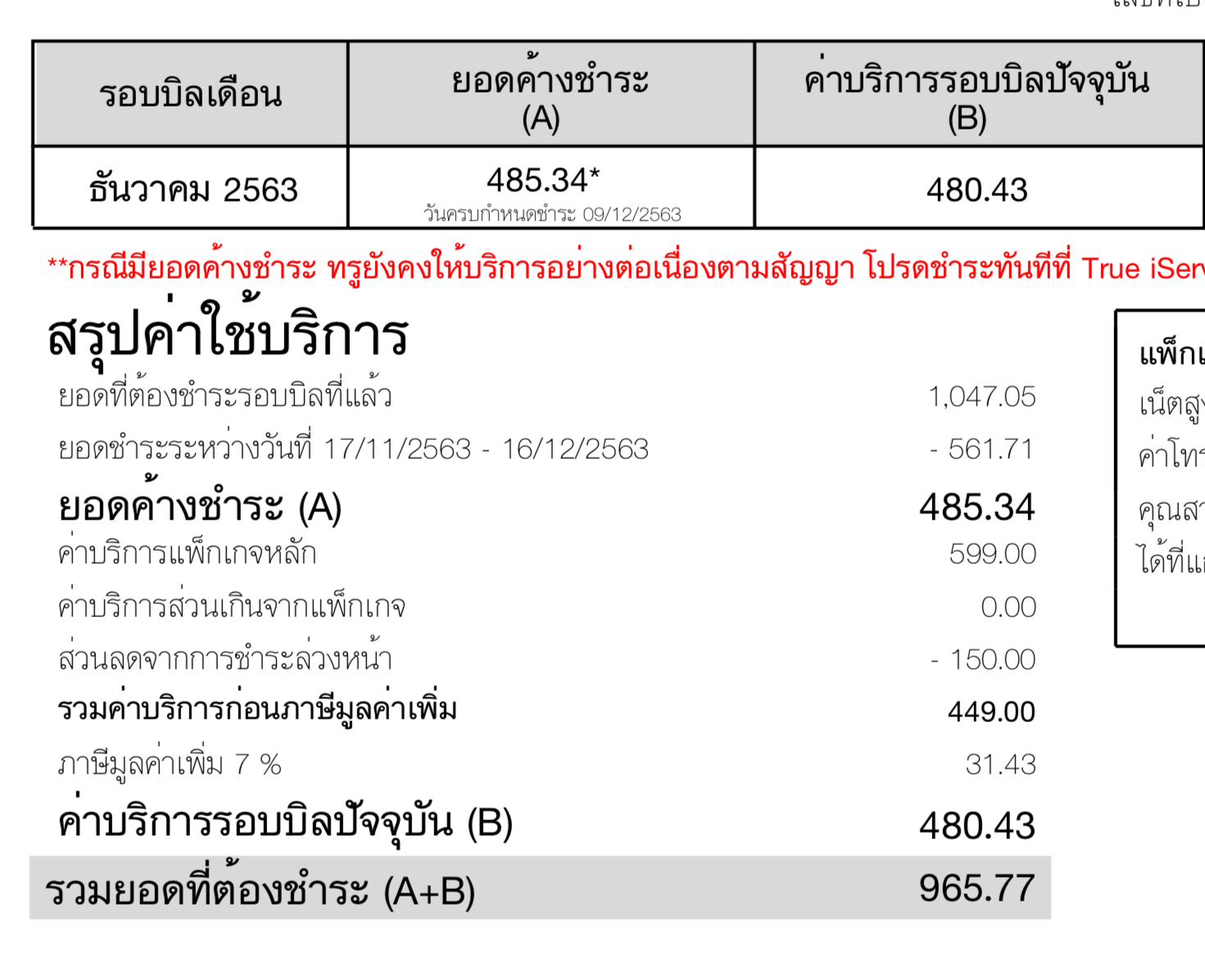 ข้อความขึ้นว่าคุณมียอดค้างชำระค่าเน็ตรายเดือนดีแทค