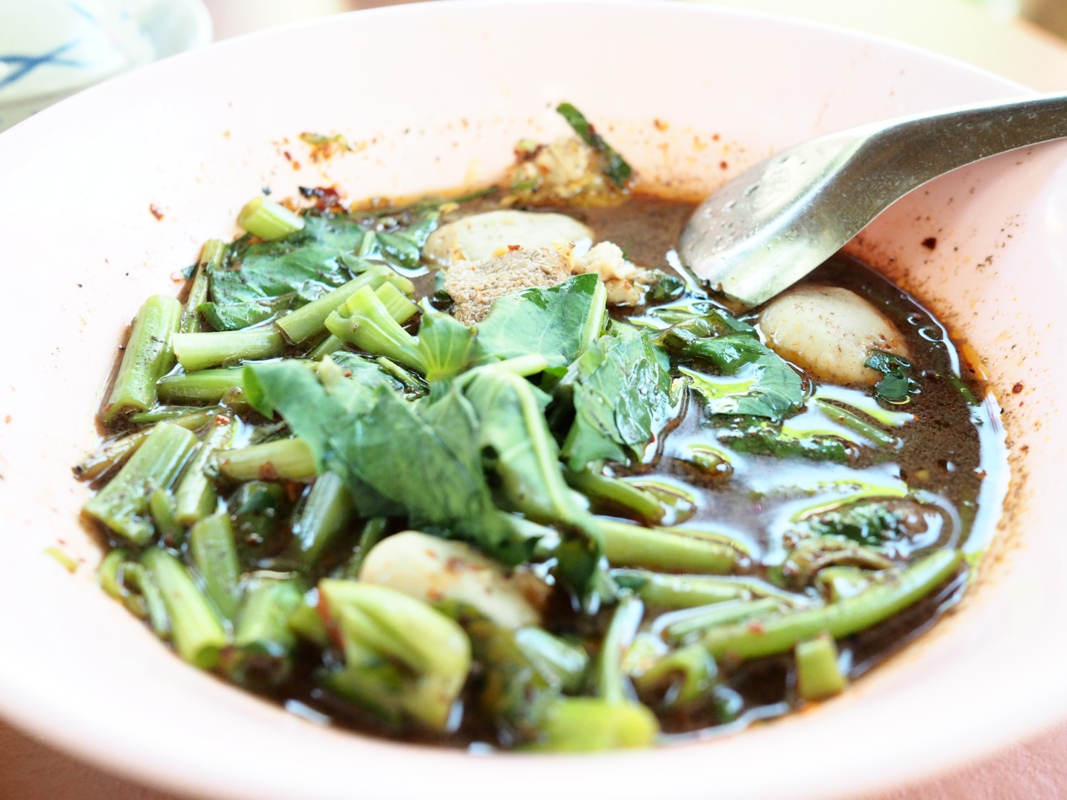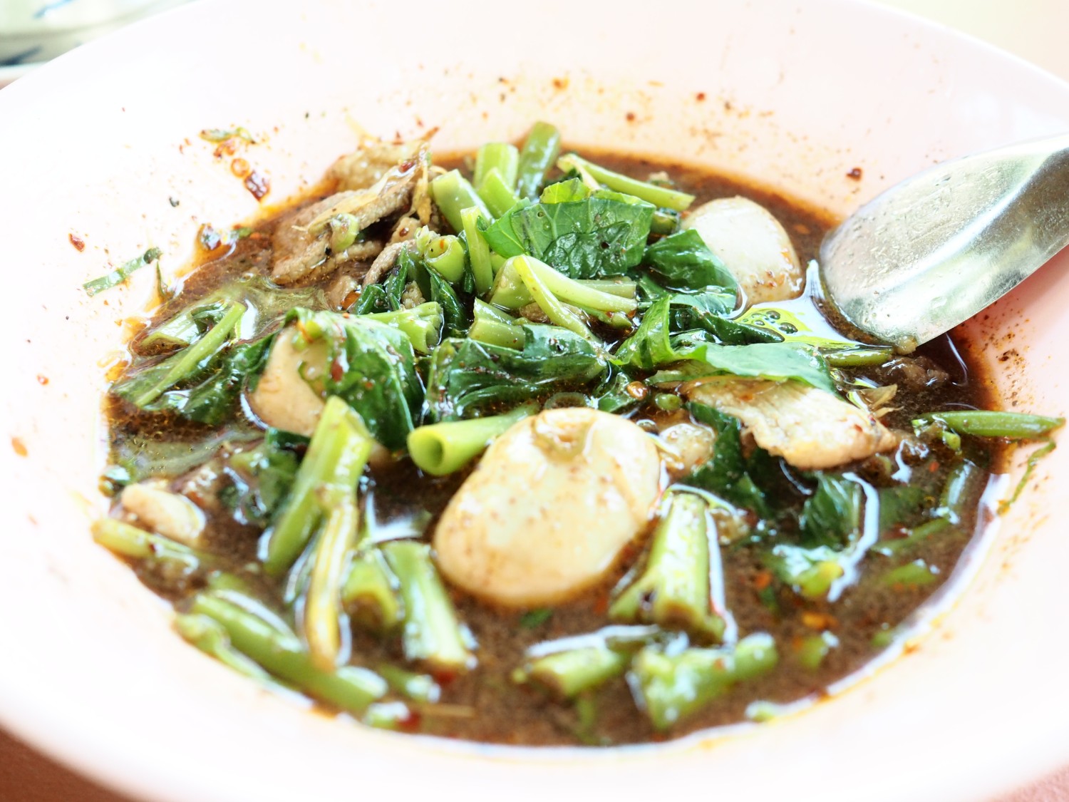เป็นก๋วยเตี๋ยวเรือที่เราว่า รสชาติ หาทานได้ยากแล้วนะคะ น้ำซุปก่วยเตี๋ยวหอมเตะจมูกมาก หอมแบบสมุนไพร เราสั่งเกาเหลาหมูน้ำตก ไม่มีกลิ่นคาวเลือดเลย รสชาติ ไม่เค็ม ไม่หวาน น้ำก๋วยเตี๋ยวก็เข้มข้นมาก ไม่ต้องปรุงก็อร่อยค่ะ (แต่เรากินเปรี้ยว เลยต้องแอบใส่น้ำส้มไปนิดนึง อิอิ)
