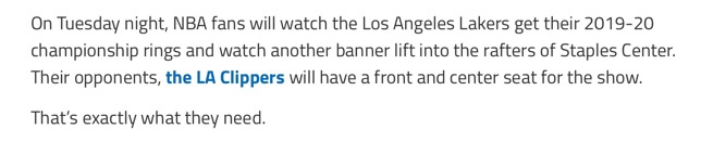 Clippers มีอายุเฉลี่ยสูงสุดตลอดกาลใน NBA ที่ 33.2 ปีฤดูกาลนี้ ล่าสุดจัดผู้เล่นอายุเกิน 34 เป็นตัวจริงในสนามทั้งหมด 4 คนเป็นทีมเเรกในรอบเกือบ 10 ปีที่ทําเเบบนี้ประกอบไปด้วยคาไว, เครา, Lopez เเละ Batum