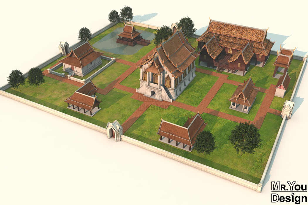 - จำลองวัดพระศรีสรรเพชญ์ 3D และวัดไทยที่อื่นๆ 3D Model