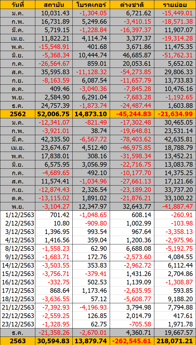 Sinthorn Summary 23/12/2563 : ต่างชาติขายสุทธิ -705.58 ลบ.