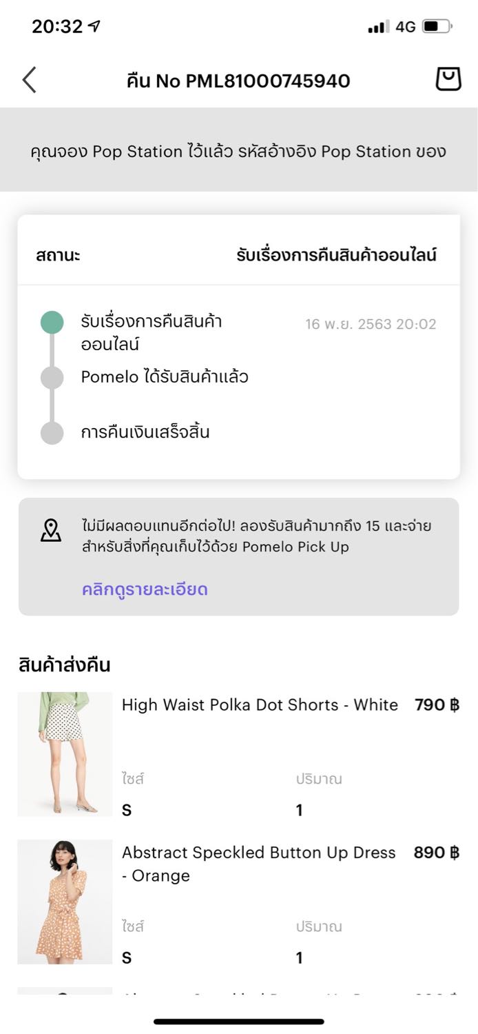 ทำเรื่องคืนสินค้าไปตั้งแต่วันที่ 16 พ.ย.63 จนวันนี้วันที่ 24 ธ.ค.63 ยังไม่ได้รับการคืนเงินแต่อย่างใด สอบถามเจ้าหน้าที่ไปก็ตอบแค่ว่า ต้องรอระบบทำคืนคะ ภายใน3-5 วันทำการ ถามไปกี่ครั้งก็ตอบแบบเดียวกันทุกครั้ง สงสัยคำว่า 3-5 วันทำการต้องเอามานับรวมกันทุกครั้งละถึงจะได้ครบตามเวลาที่เขาบอก เพราะตอนนี้ก็เลย 30 วันไปแล้ว คงจะต้องเลิกซื้อ pomelo แล้ว ยอดเงินคืนก็ไม่นอน