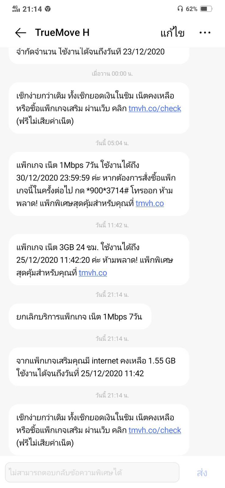 ทีแรกเราสมัครแบบ 72 ชม. 1mbps อ่ะค่ะ แล้วทีนี้ไปซื้อเพิ่มเป็นแบบ 90 วัน 4mbps เรายังไม่ได้ใช้ของแบบ 90 วันว่าจะยกเลิกของ 72 ชม. แต่กด *190# แล้วโดนยกเลิกไปหมดทุกโปรเลยอ่ะ เสียดายมาก สมัครยังไม่ถึงชั่ว