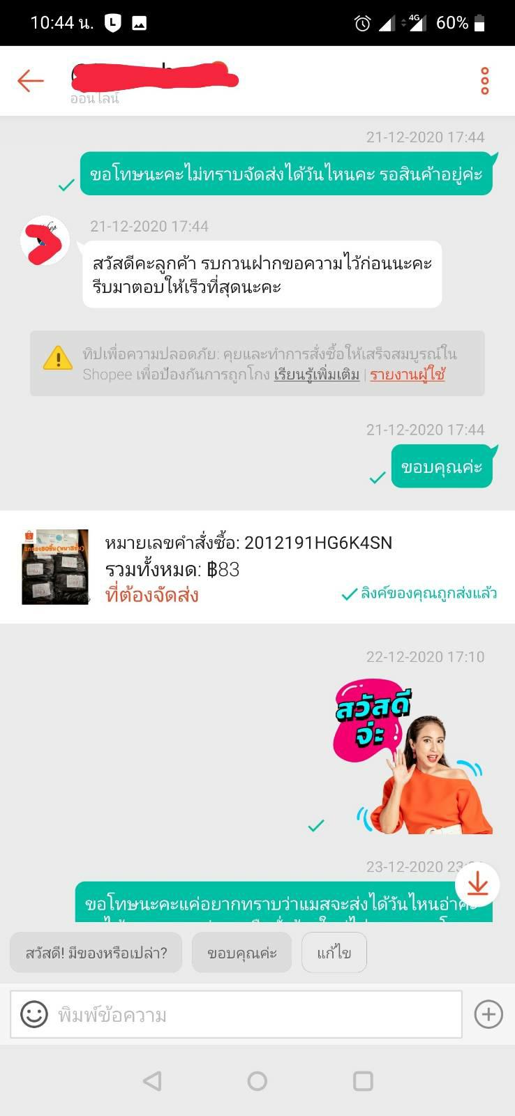 มีใครเจอปัญหาเดียวกันบ้างคะ สั่งแมสจากร้านค้าในshopee ไปก่อนแมสขึ้นราคาอีกค่ะ เมื่อวันที่ 19/12/63 ซึ่งร้านนี้เราอ่านรีวิวแล้วค่อนข้างโอเคนัดส่งเร็วเลยเลือกสั่ง ตอนนั้นราคาแค่ 54 บาทค่ะ จ่ายเงินไปเรียบร้อย รวมส่ง 83 บาท