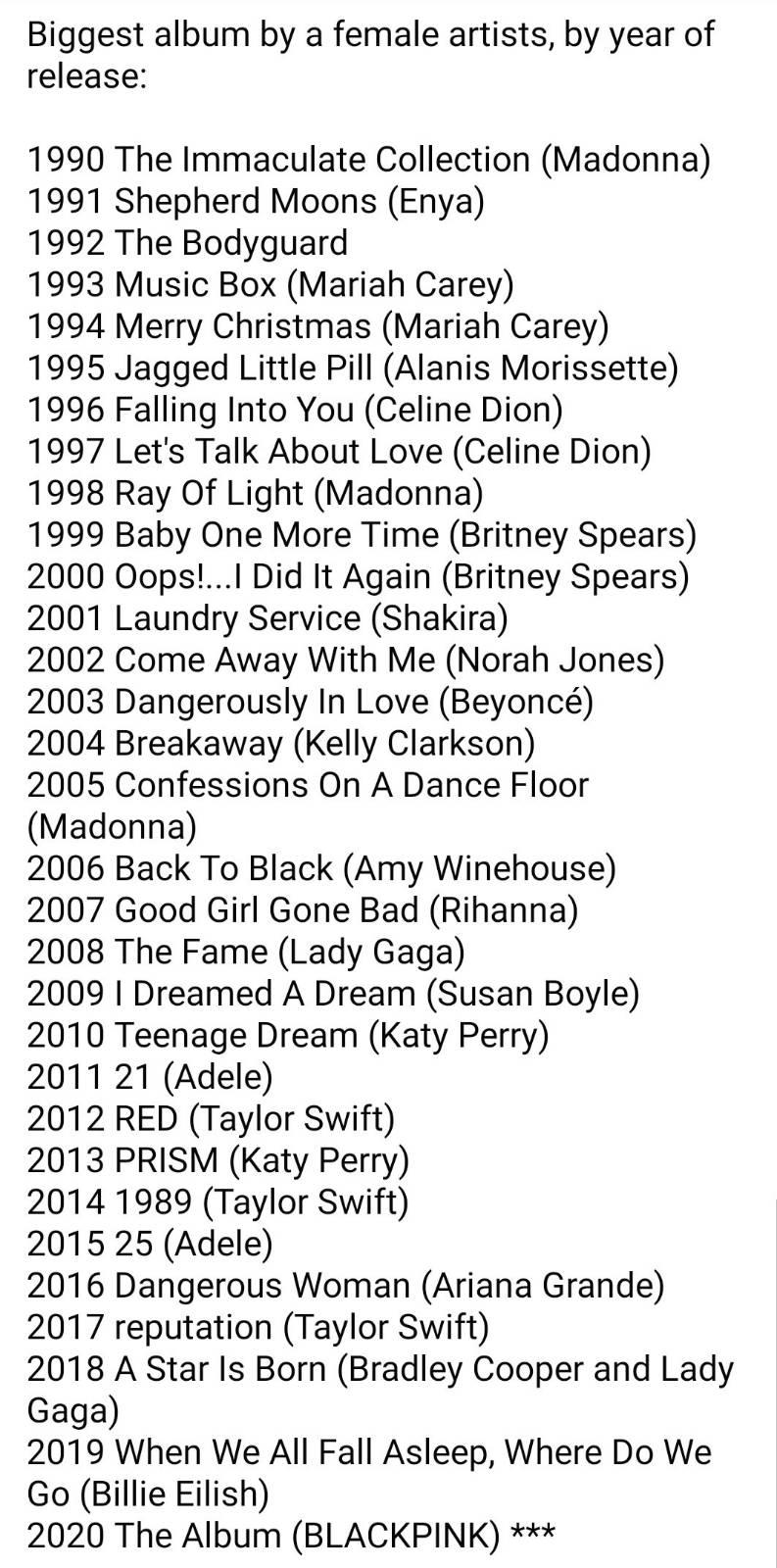 - อันดับ #1 ของโลก อัลบั้มถูกขายมากที่สุดโดยศิลปินหญิงในปีนี้