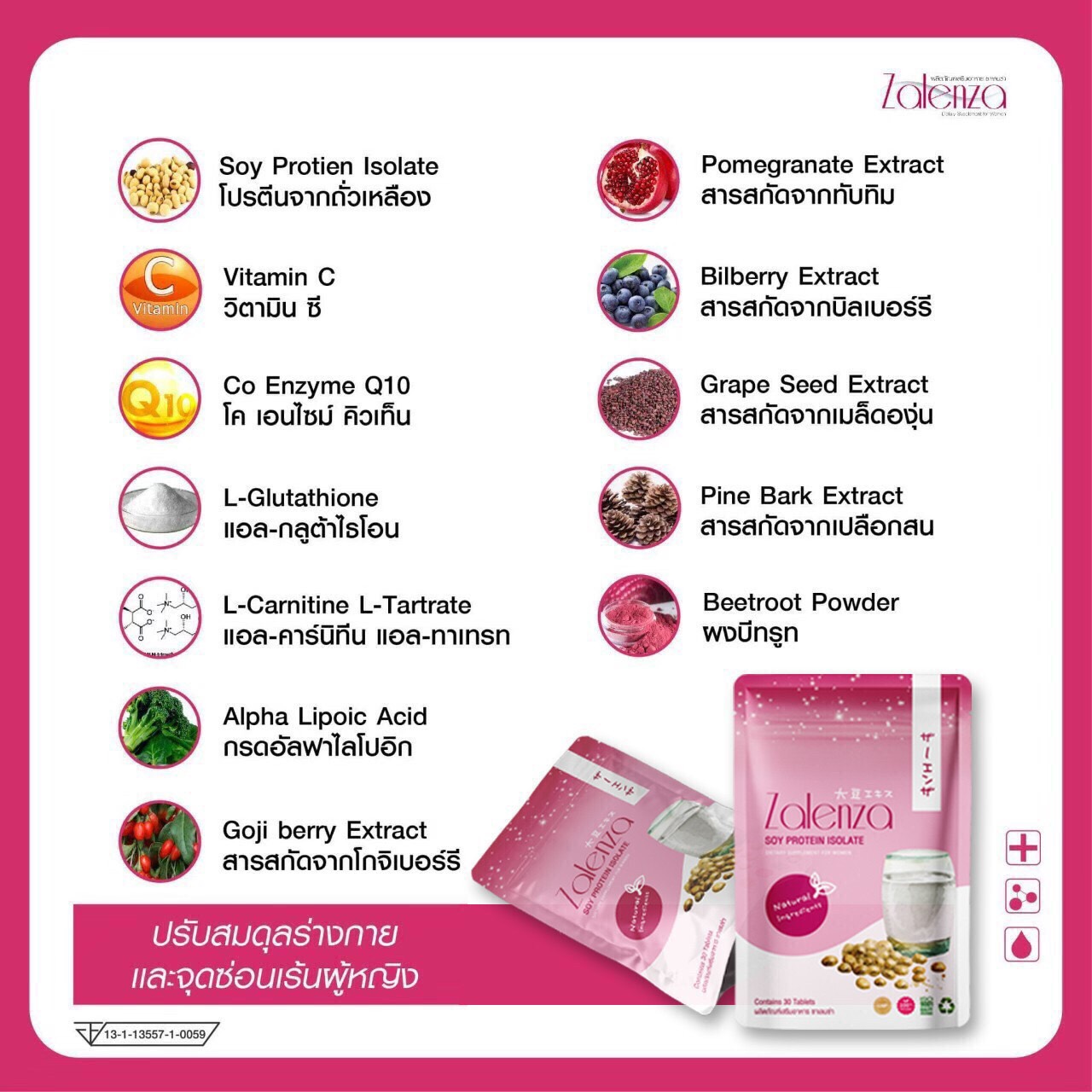 Zalenza ซาเลนซ่า อาหารเสริมถั่วเหลืองสกัดปรับสมดุลฮอร์โมนเพศหญิง 1 ซอง 30 เม็ด