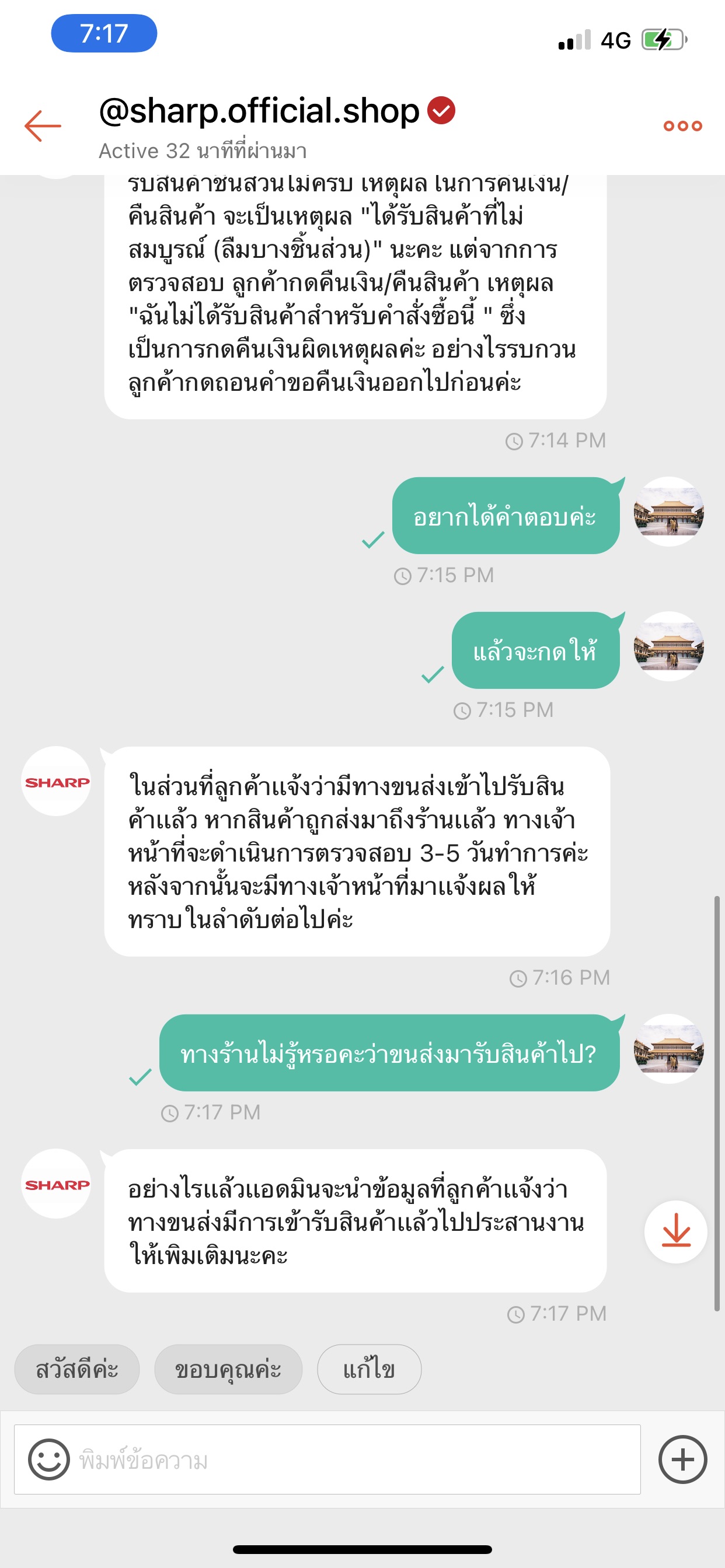 สั่งของจาก sharp officials ใน shoppee ได้ของไม่ครบ ไม่มีคนรับผิดชอบ