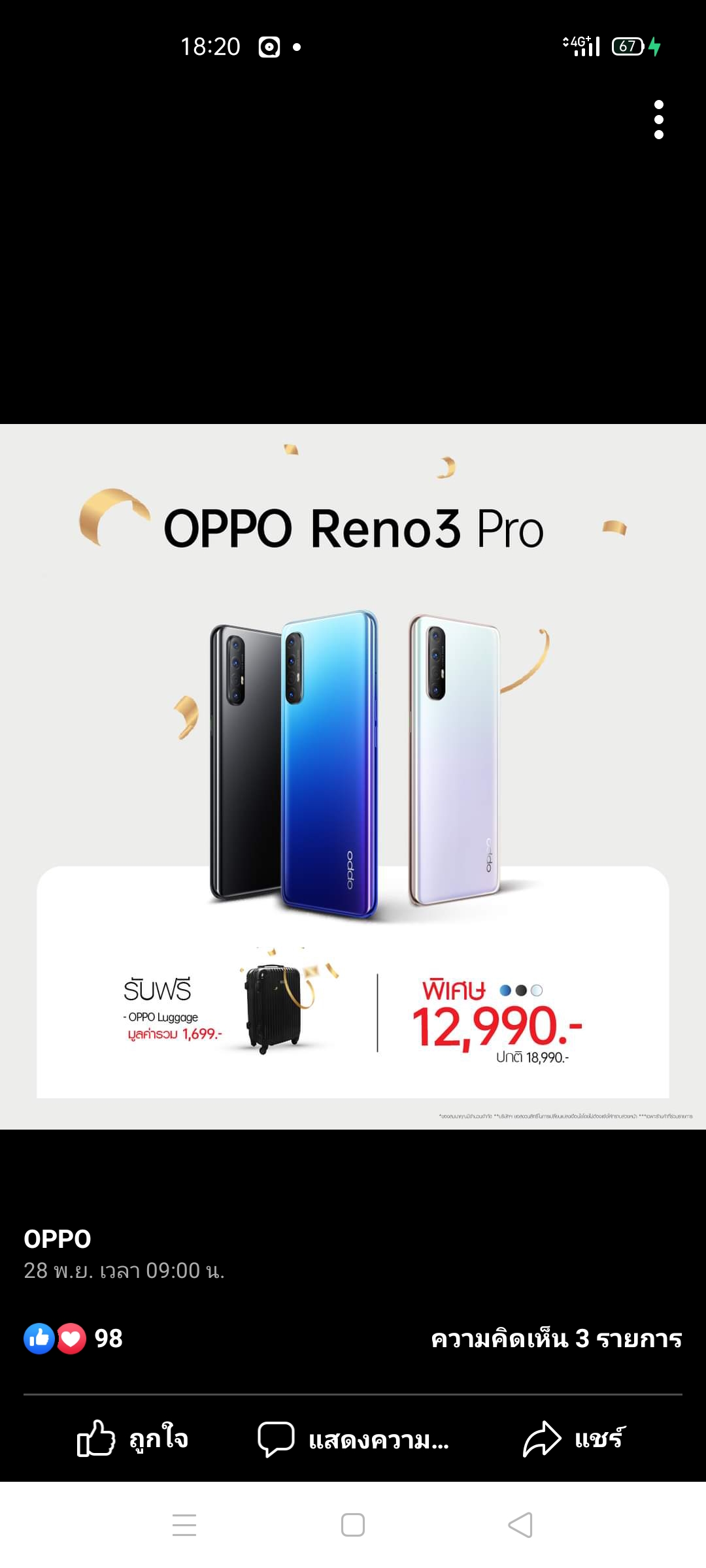 คือเราตั้งใจจะซื้อโทรศัพท์ของoppo รุ่นreno3pro ประกอบกับช่วงปีใหม่มันมีโปรศูนย์ของoppo ที่ลดราคา และมีของแถม