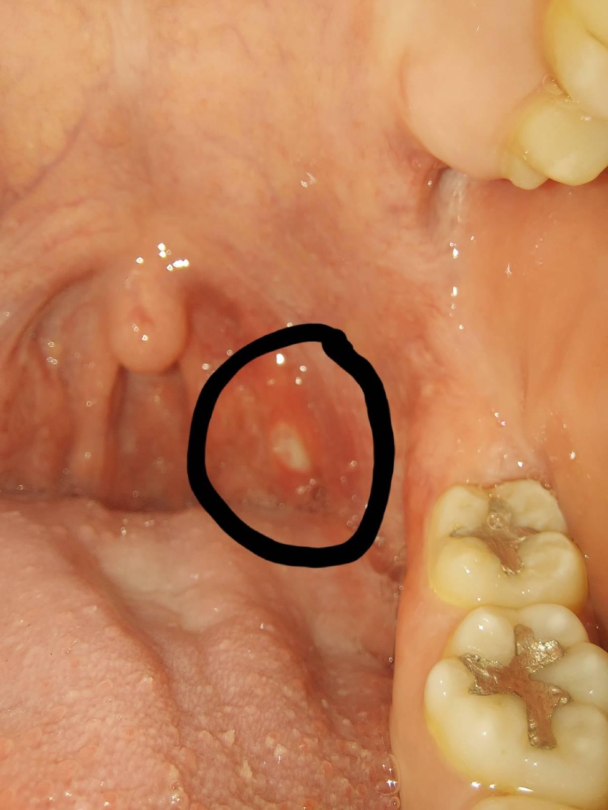เป็นแผลที่ต่อมท่อมซิล คล้ายๆกับเป็นร้อนใน