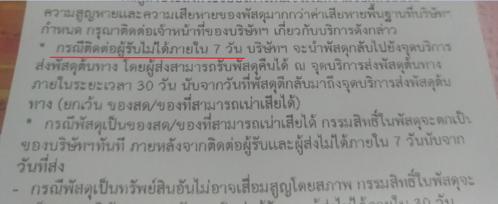 เราเลยถามว่าแล้วข้อตกลงนี่คืออะไร ไหนบอกว่าติดต่อผู้รับไม่ได้ 7 วันถึงตีกลับ ไม่มีคำตอบ ได้เงินแล้วทึ้งลูกค้า