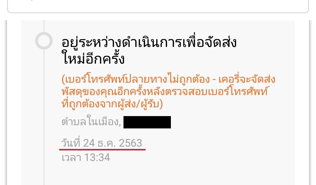 จึงรอให้วันจันทร์ที่ 28 ค่อยไปติดต่อรับพัสดุ กลายเป็นว่า 28 พัสดุตีกลับมาถึงจังหวัดผู้ส่งเรียบร้อย ทั้งที่ผ่านไปแค่ 4 วัน