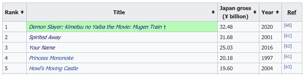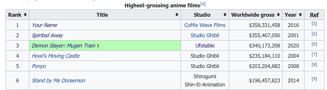 มารอดูกันว่าอนิเมะเรื่องนี้จะได้กลายมาเป็นอนิเมะญี่ปุ่นที่ทำเงินสูงสุดอันดับ 1 แซงหน้าเรื่อง Spirited Away และ Your Name ของรายได้ทั่วโลกได้หรือไม่