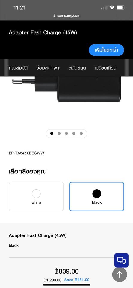 สั่งผ่าน https://www.samsung.com/.../travel-adapter-ep-ta854-ep.../