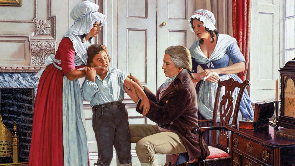 Edward Jenner ฉีดวัคซีนไข้ทรพิษครั้งแรกที่แขนของ James Phipps ในปี 1796 Cr.ภาพ University Of Michigan