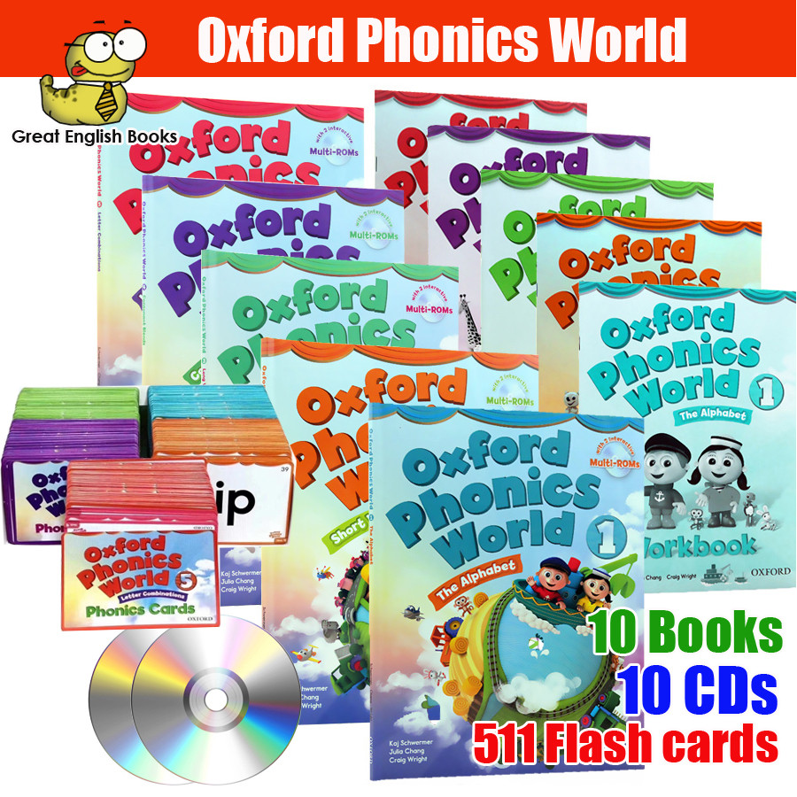 🍒พร้อมส่ง แบบฝึกหัดOxford Phonics World 10 เล่ม + CD 10 แผ่น + flash card 511 ใบ Level 1-5 สำหรับน้องๆวัยประถมนะคะ