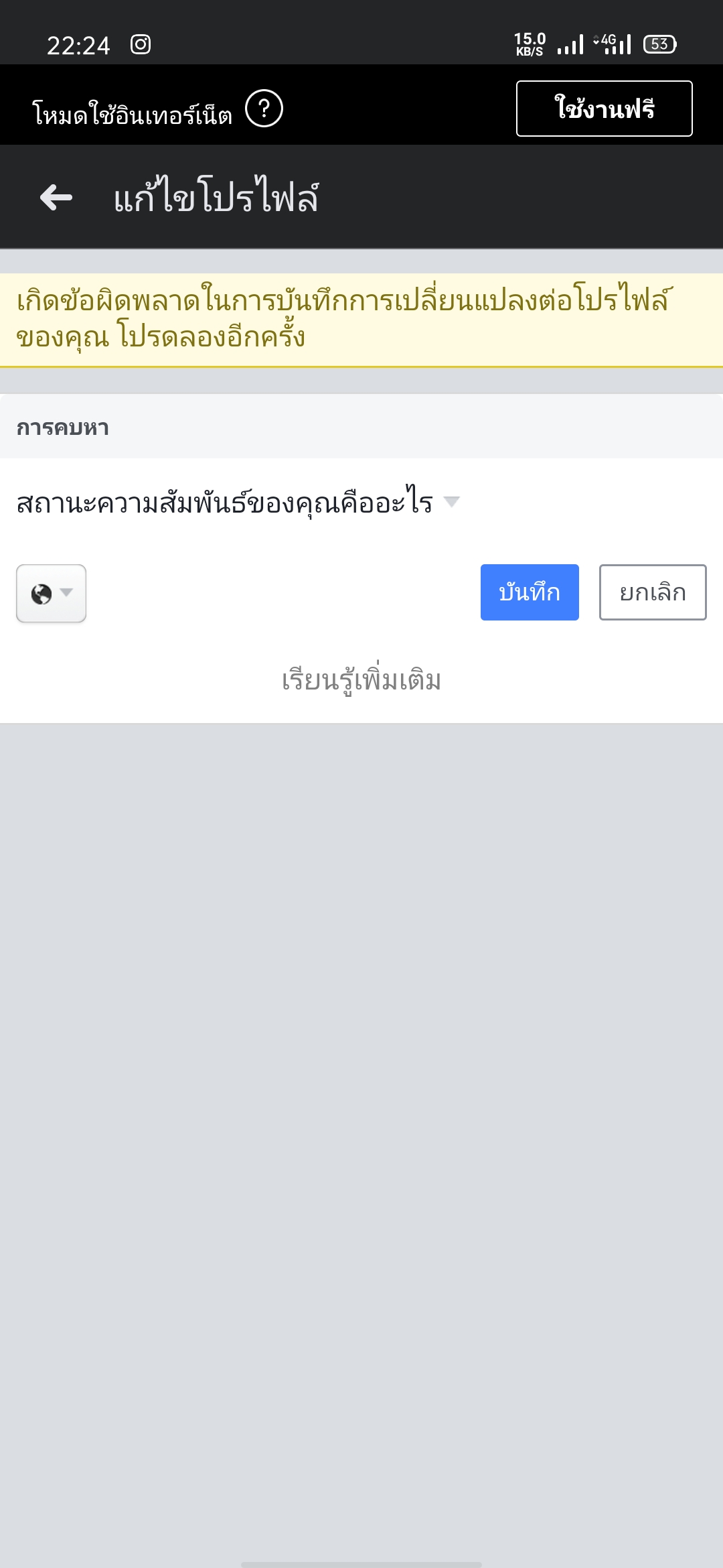 เฟสบุ๊คตั้งสถานะไม่ได้