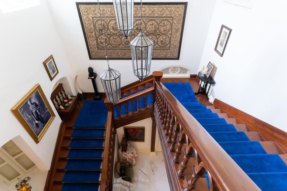บริเวณโถงบันไดประดับประดาด้วยรูปถ่ายของบรรพบุรุษผู้อยู่อาศัยเดิม แต่ที่สะดุดตาที่สุดสําหรับผม คือ พระบรมฉายาลักษณ์พร้อมลายพระหัตถ์ของล้นเกล้าฯรัชกาลที่ ๖ ถึงพระยาอนิรุทธเทวา (หม่อมหลวงฟื้น พึ่งบุญ ; คุณปู่ของครูแซม) มหาดเล็กคนสําคัญและอดีตผู้บัญชาการกรมมหรสพในรัชกาลพระบาทสมเด็จพระมงกุฎเกล้าเจ้าอยู่หัว
