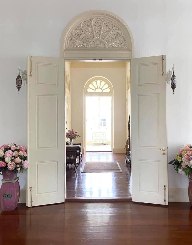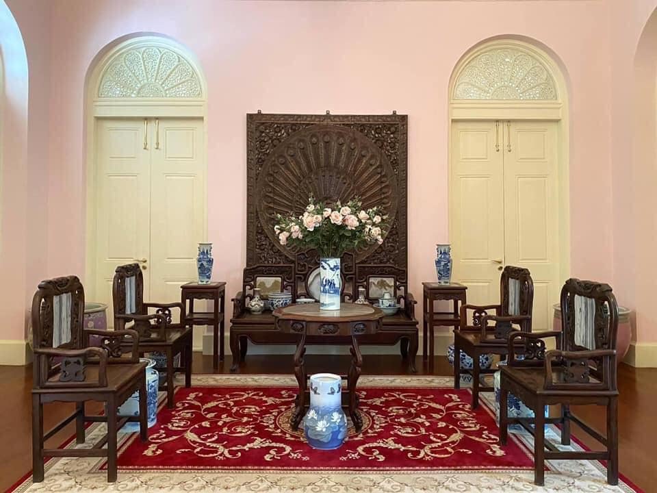 การตกแต่งบูรณะห้องต่าง ๆ ดูน่าสนใจไม่น้อย อย่างเช่น ห้องนี้ที่เลือกใช้โทนสีชมพูอ่อน ส่วนตัวผมรู้สึกเลื่อมใสครูแซม ที่ยังคุมโทนสีไม่ให้หลุดจากสไตล์ 𝐂𝐨𝐥𝐨𝐧𝐢𝐚𝐥 ของอาคาร โดยครูแซมเผยถึงสาเหตุที่เลือกโทนสีชมพูอ่อน เพราะพระยาอนิรุทธเทวาท่านชื่นชอบสีชมพู สังเกตได้จากสีของเครื่องเรือนต่าง ๆ