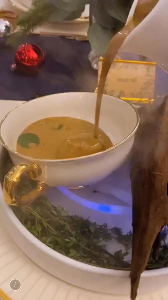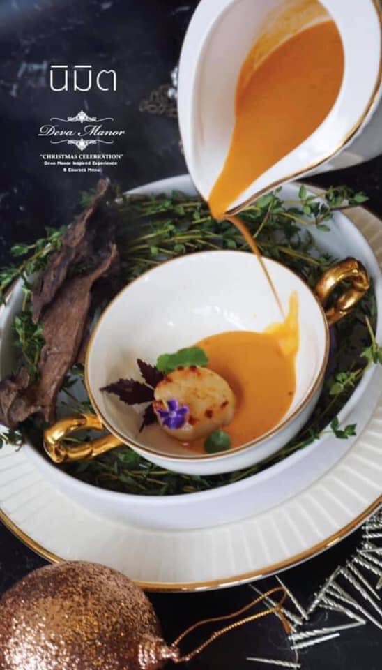 แม้เชฟผึ้งจะไม่ได้อธิบายลงลึก แต่ก็เข้าใจได้เองว่าไอเดียของเมนูนี้คือ ‘𝐁𝐫𝐢𝐧𝐠 𝐋𝐢𝐟𝐞 𝐁𝐚𝐜𝐤 𝐓𝐨 𝐓𝐡𝐢𝐬 𝐇𝐨𝐮𝐬𝐞’ (นําครีมล็อบสเตอร์เข้มข้นเทลงไปในหอยเชลล์ตัวยักษ์ท่ามกลางหมอกและความทรงจำสีจาง ๆ )