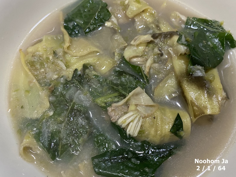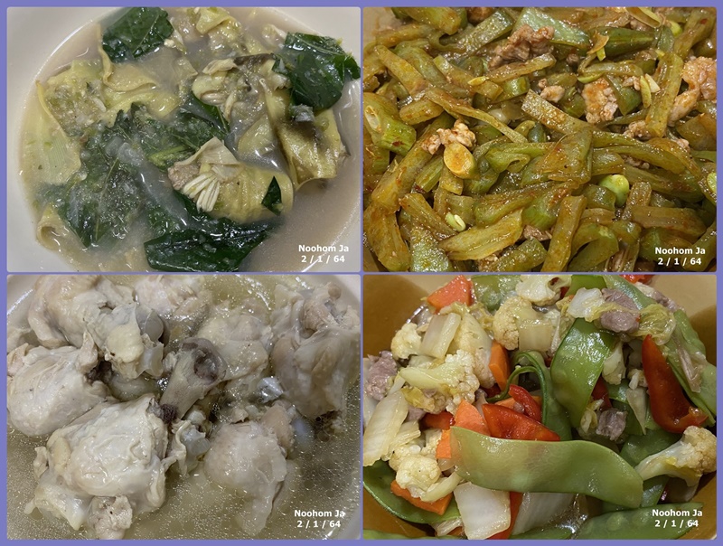 วันเสาร์ที่ 2 มกราคม พ.ศ. 25642 วันหยุดหลังปีใหม่ เชียงใหม่อากาศเย็นพอสบายสายๆหมอกควันลงเพราะอากาศกดตัว วันที่หนึ่งปีใหม่ผ่านไป เหล่าเทวดาสิ่งศักดิ์สิทธิผู้มีฤทธิต่างเหนื่อยกับการตระเวนแจกความสุขที่ทุกคนต่างอ้างถึงขอให้ท่านนำไปมอบให้แด่เพื่อนพี่น้องญาติมิตรสหายนายลูกน้องผู้รู้จักของตน ขอขอบคุณในทุกคำอวยพรที่ให้มาและจงส่งผลกลับคืนแด่ผู้ให้ร้อยเท่าทวีคูณ เจ็ดวันปีใหม่นี้คงจะเล่าเรื่องแต่สิ่งที่ดีสู่กันฟังเพื่อเป็นศิริมงคลประจำต้นปีและต่อไป ประกอบรายการเมนูอาหารประจำวันที่ตื่นมาทำทุกเช้า วันนี้มี แกงปลี แกงมงคลเหมาะแก่การหามาทานตอนปีใหม่หรือปลีใหม่อาหารที่มีคุณค่าทางโภชนาการสูงทานตอนอุ่นๆปลอดภัยจากโรคร้ายน้ำขาวๆของแกงคนเฒ่าเล่าว่าเหมือนน้ำนมคนมีลูกอ่อนควรทำกินเพื่อช่วยให้มีน้ำนมมากขึ้น ยำบ่าแปบ ถั่วแปบไม้เลื้อยดอกสีม่วงสดใสที่ปลูกไว้ริมรั้วถ้ามีพื้นที่ถั่วจะออกมาให้ทานได้ตลอดทั้งปี ต้มปีกไก่ ต้มกับเกลืออย่าใส่มากแก้คอพอก ผัดผักรวมเมนูนี้คงไม่ต้องอธิบายมากเหมือนมีความรักความสามัคคีอยู่ที่ไหนก่อม่วนก่อลำแต้ๆผักผัดรวมกันได้แต่ผู้คนมากหน้าหลายตาตอนนี้ห่างๆกันบ้างก็คงจะดี โชคดีเดินทางปลอดภัยทุกท่าน