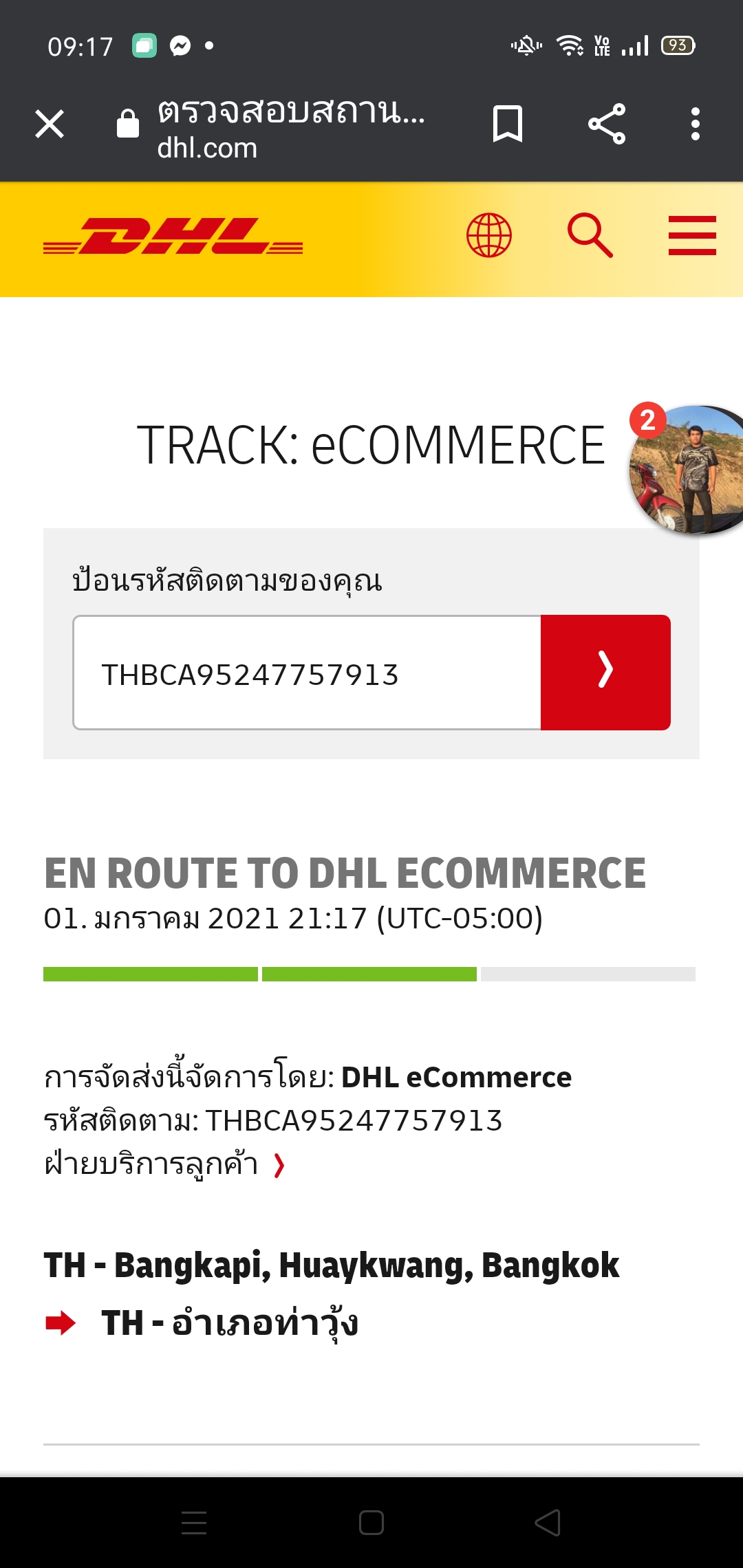 อยากทราบว่าDHl ขึ้นแบบนี้ของใกล้ถึงยังค่ะ
