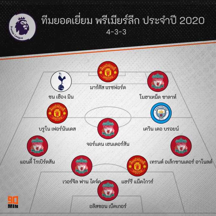 จัดทีม 11 ผู้เล่นยอมเยี่ยม พรีเมียร์ลีก จากการโหวตนักเตะยอดเยี่ยมของแฟนบอลประจำปี 2020